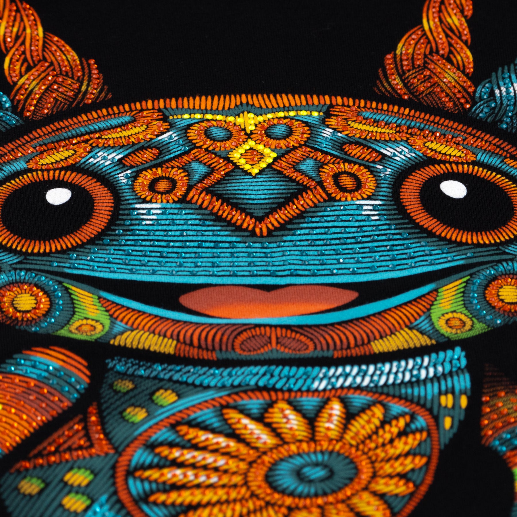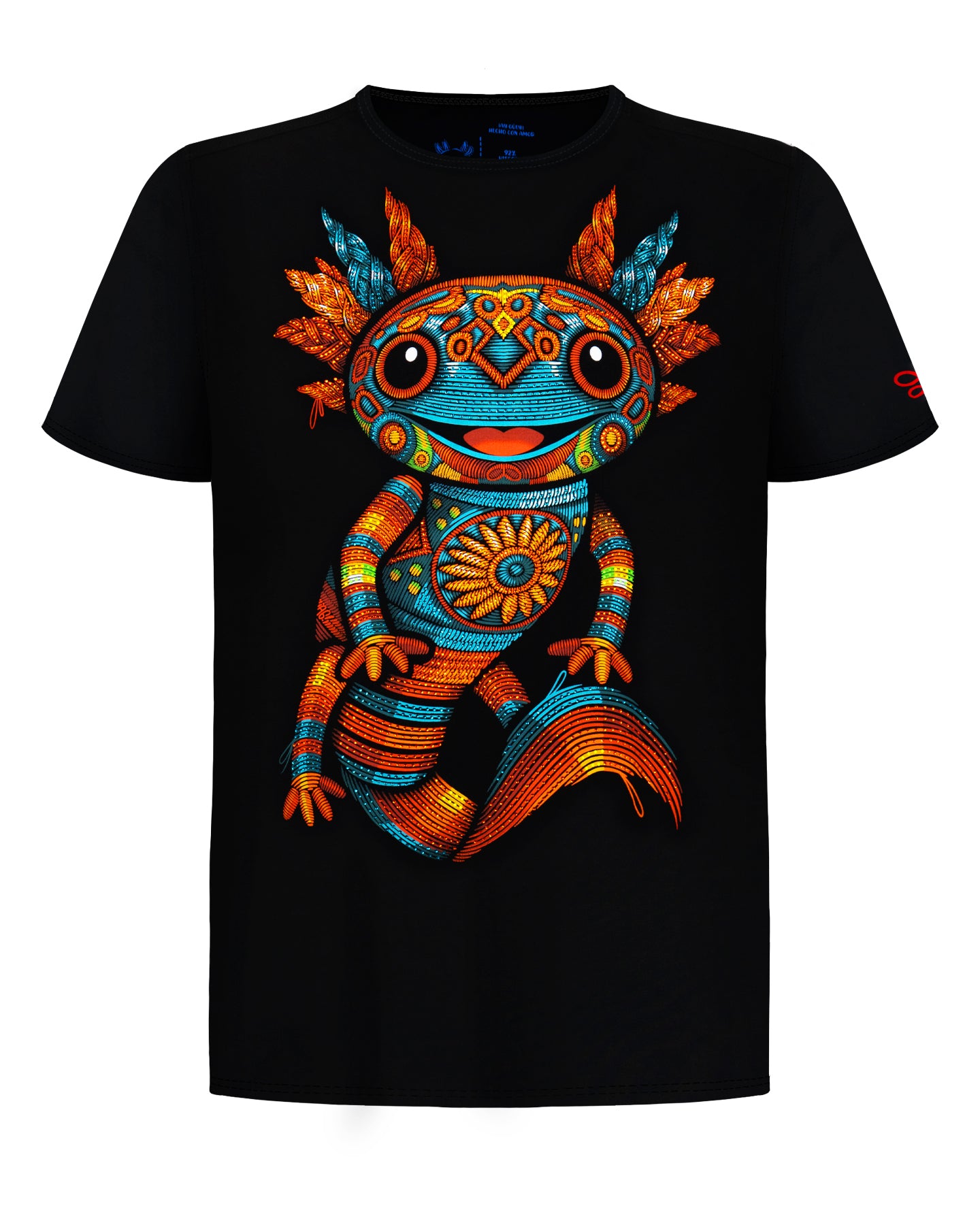 Sumérgete en un mar de color con nuestra playera inspirada en el ajolote. Su diseño simula un tejido y los destellos de neón harán que brilles más que nunca. ¡Perfecta para los amantes de los animales y la moda urbana!