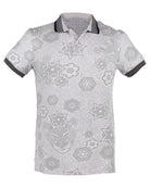 Nuevo corte de caballero tipo polo, adornada con jaguares y figuras inspiradas en la cultura huichol.