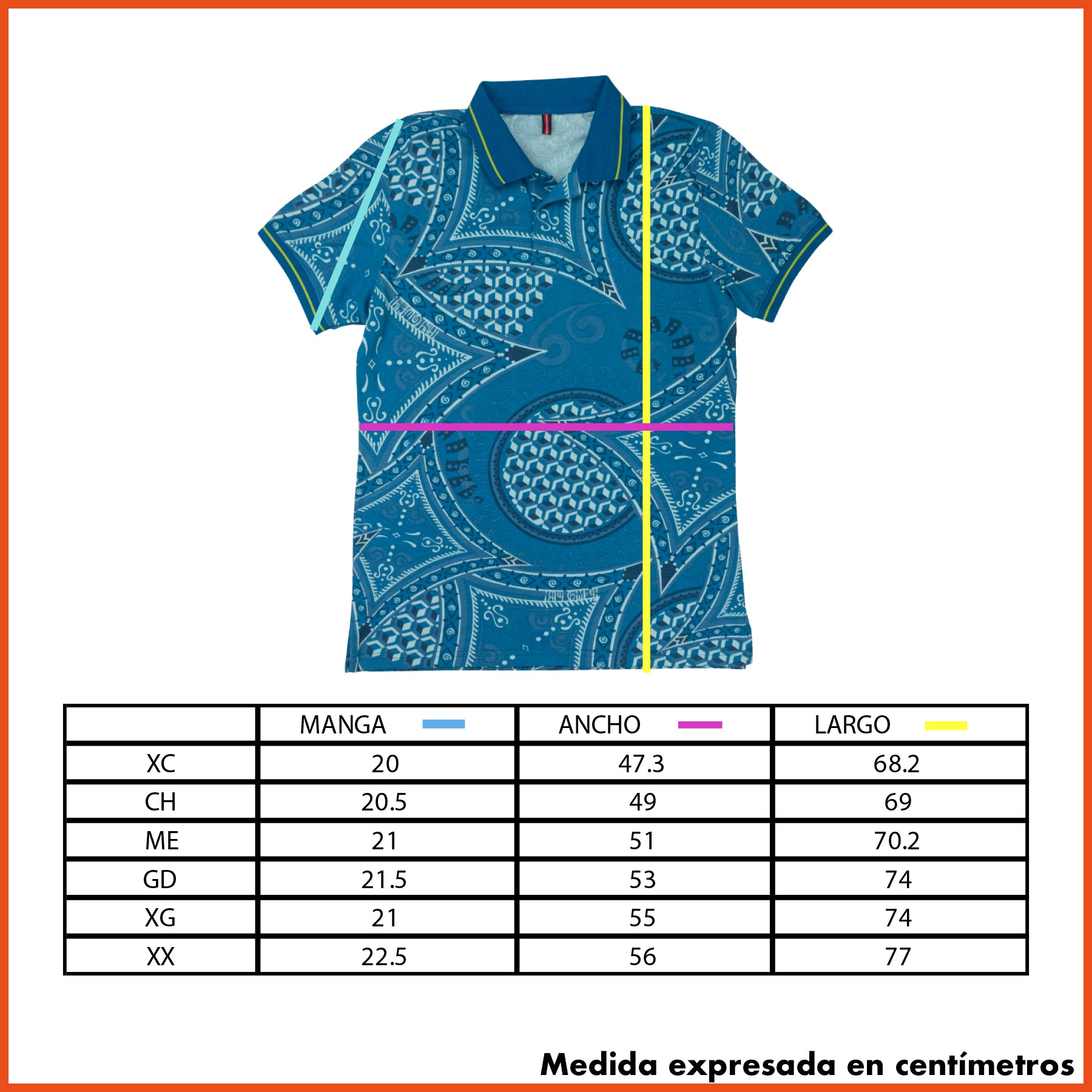 Nuevo corte de caballero tipo polo, adornada con motivos de los clásicos paliacates y las formas clásicas de los alebrijes.