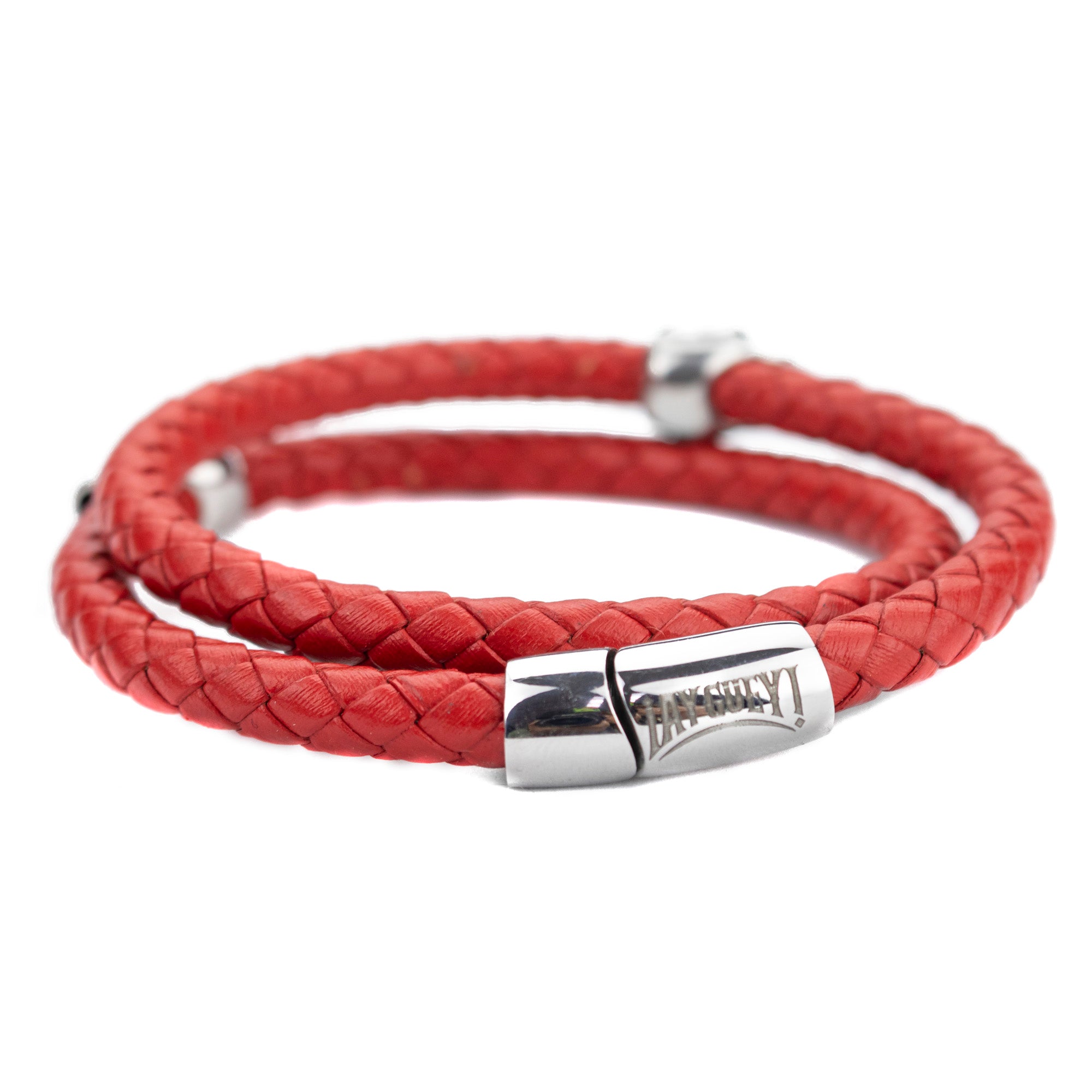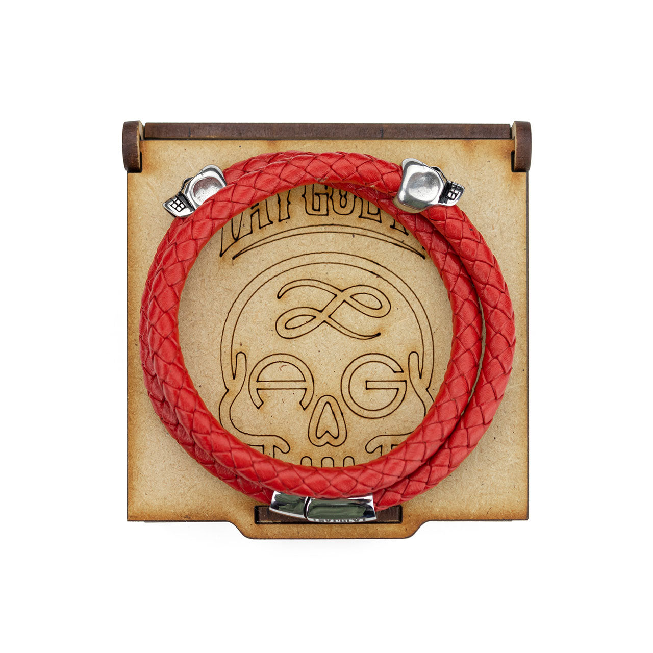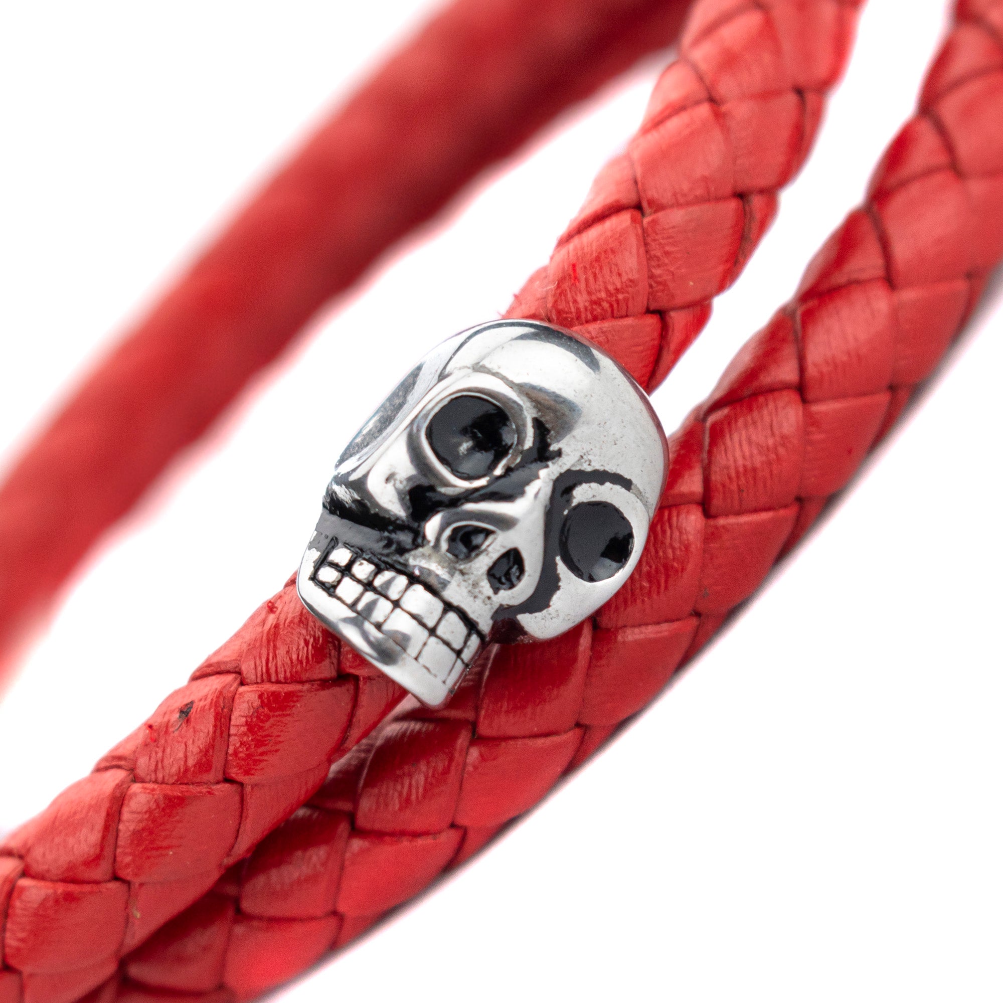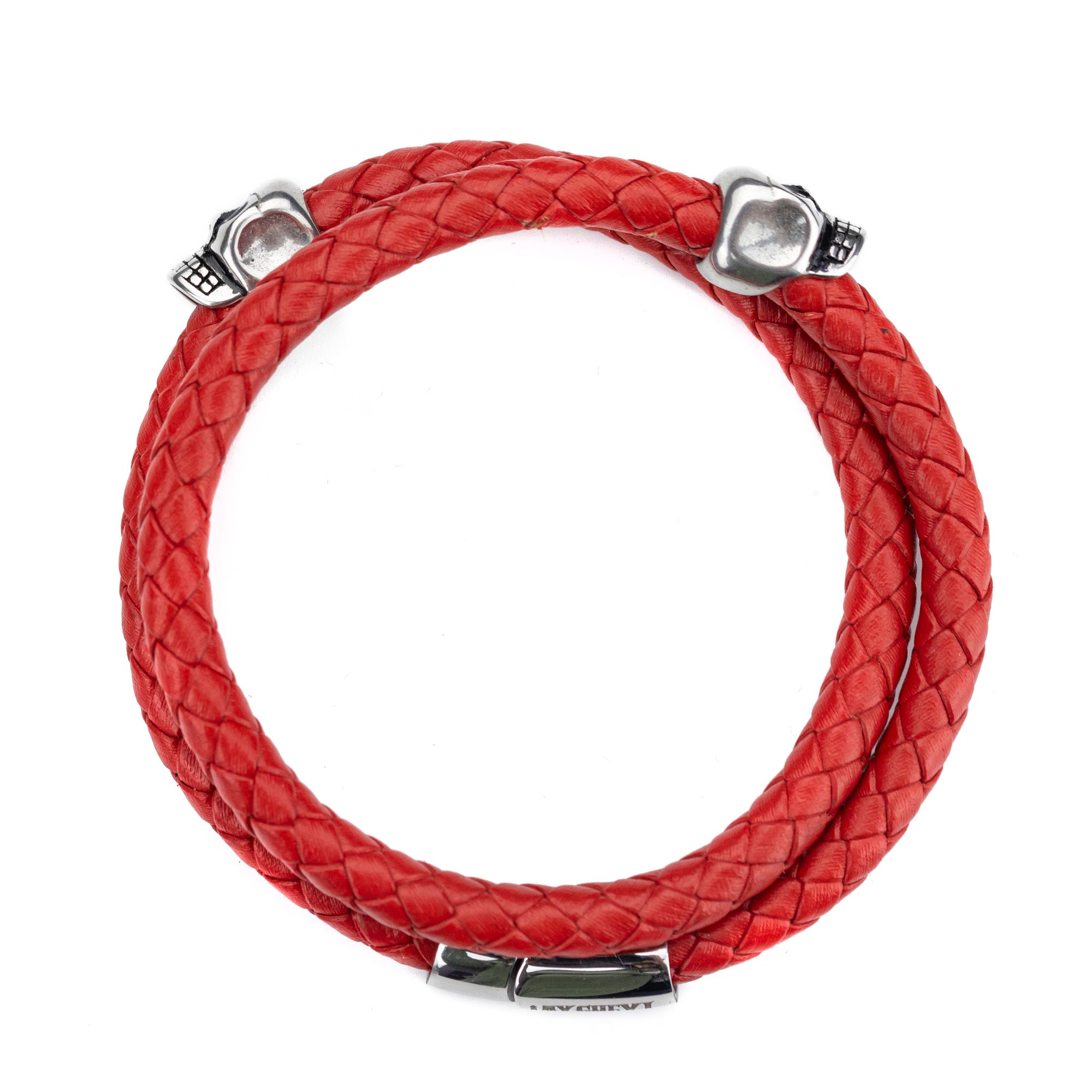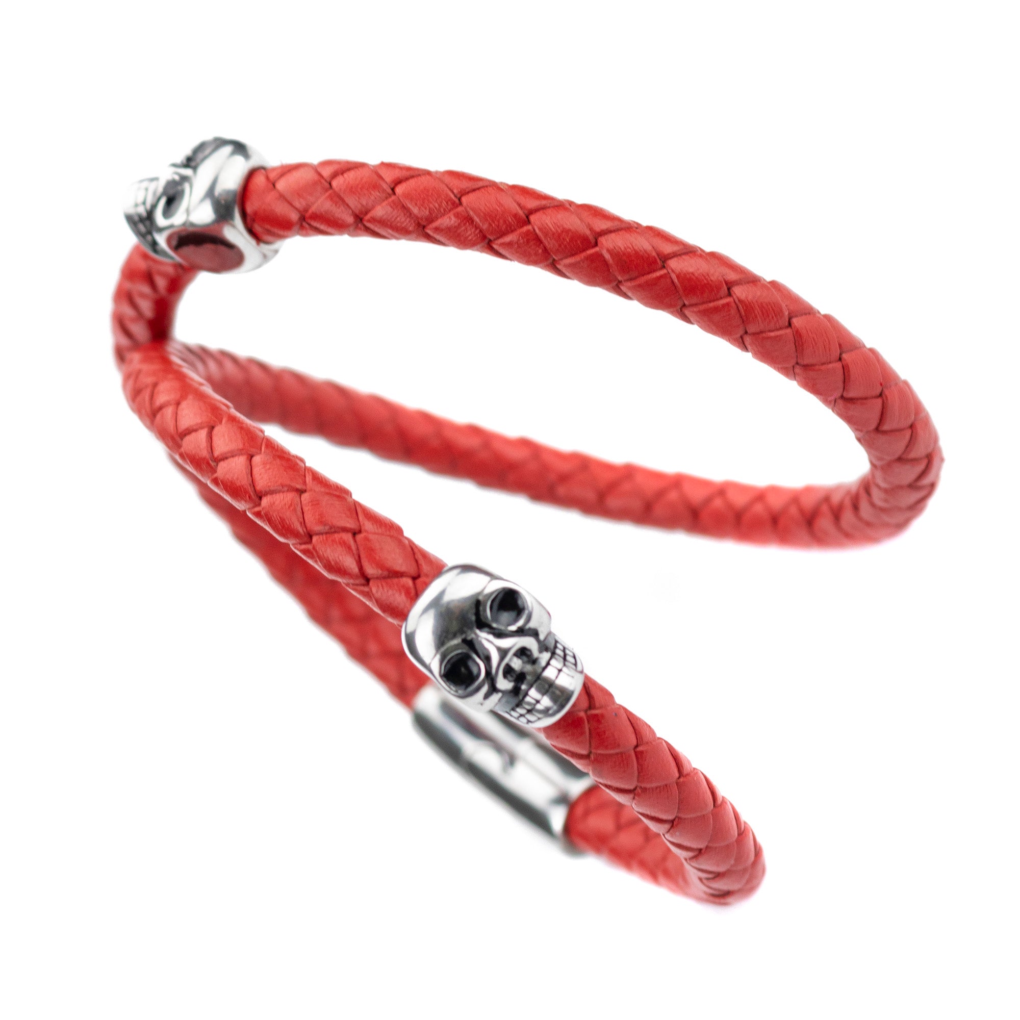 Brazalete Piel Trenzada 2 Calaveras - Rojo