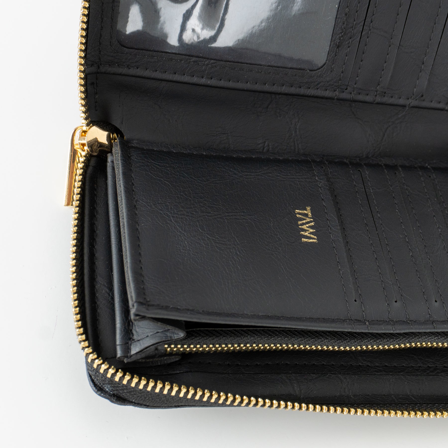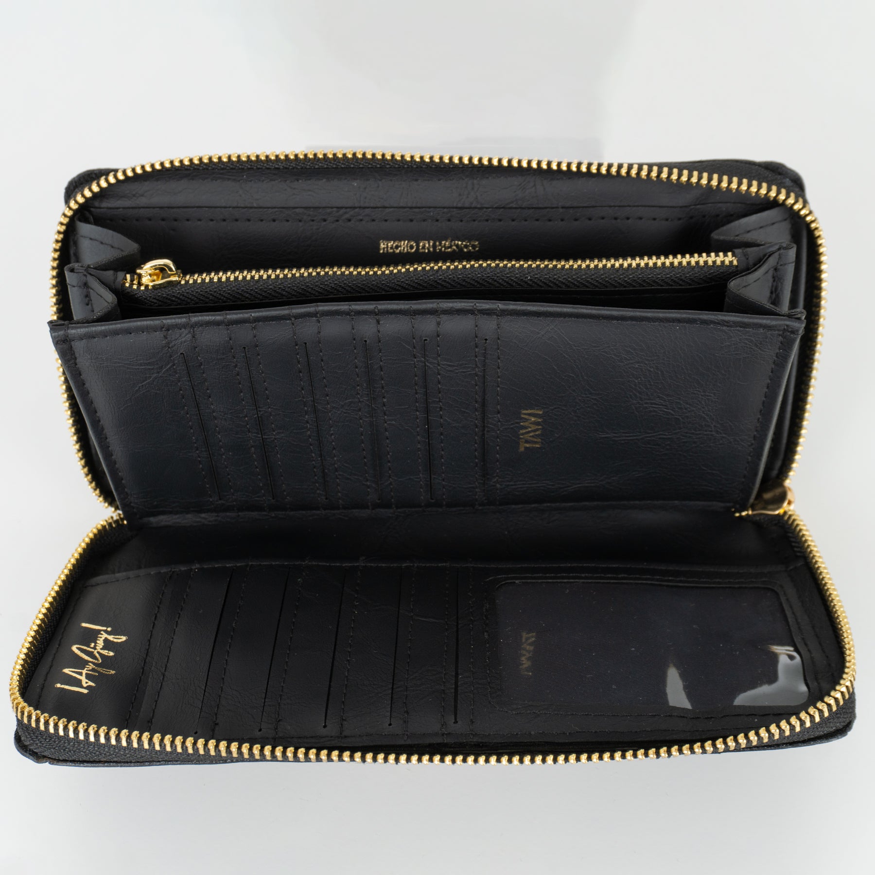 Cartera amplia de dama, con 3 bolsillos, tarjeteros y monedero.