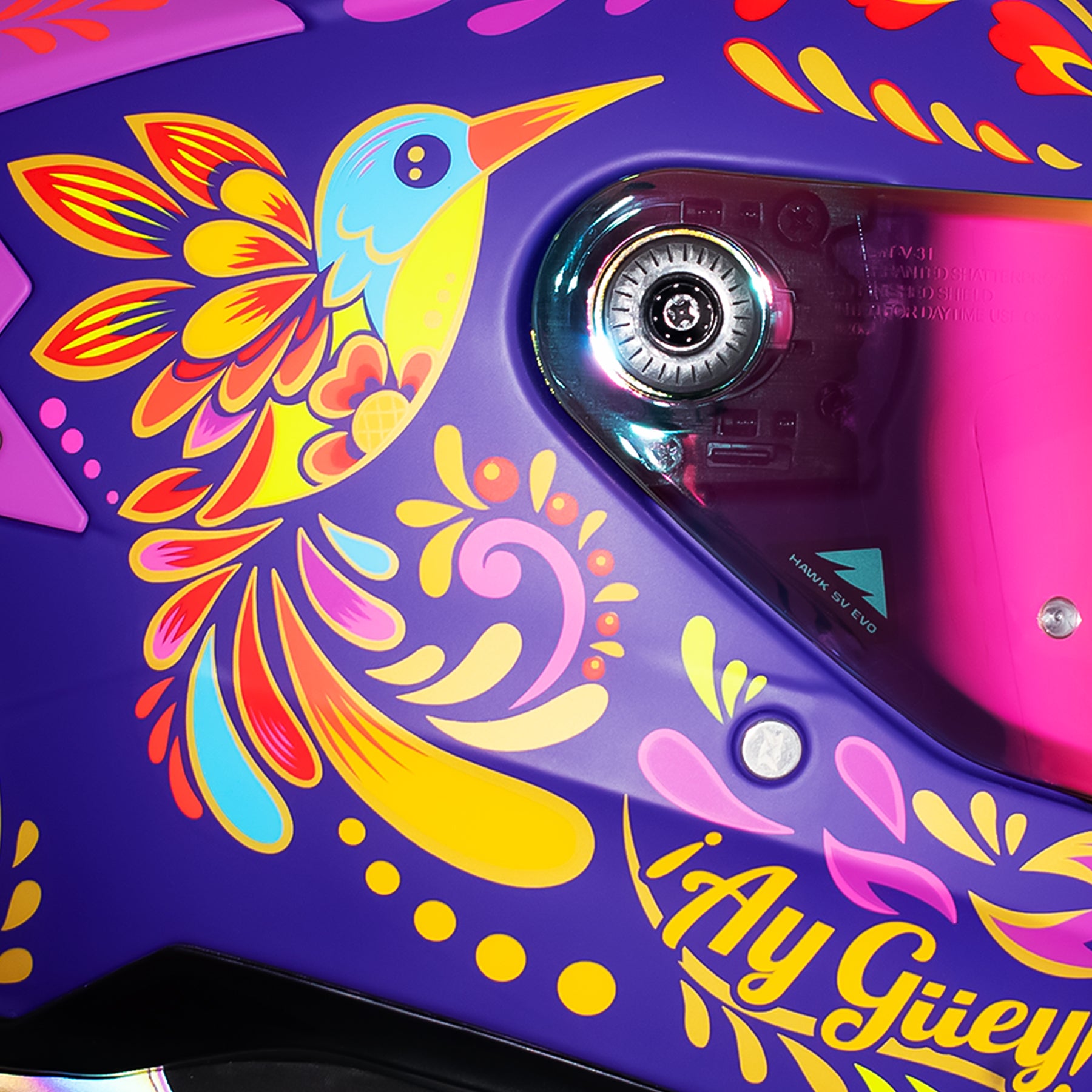 Casco para motociclista Axxis x ¡Ay Güey! - Hawk Evo SV - Modelo COLIBRÍ