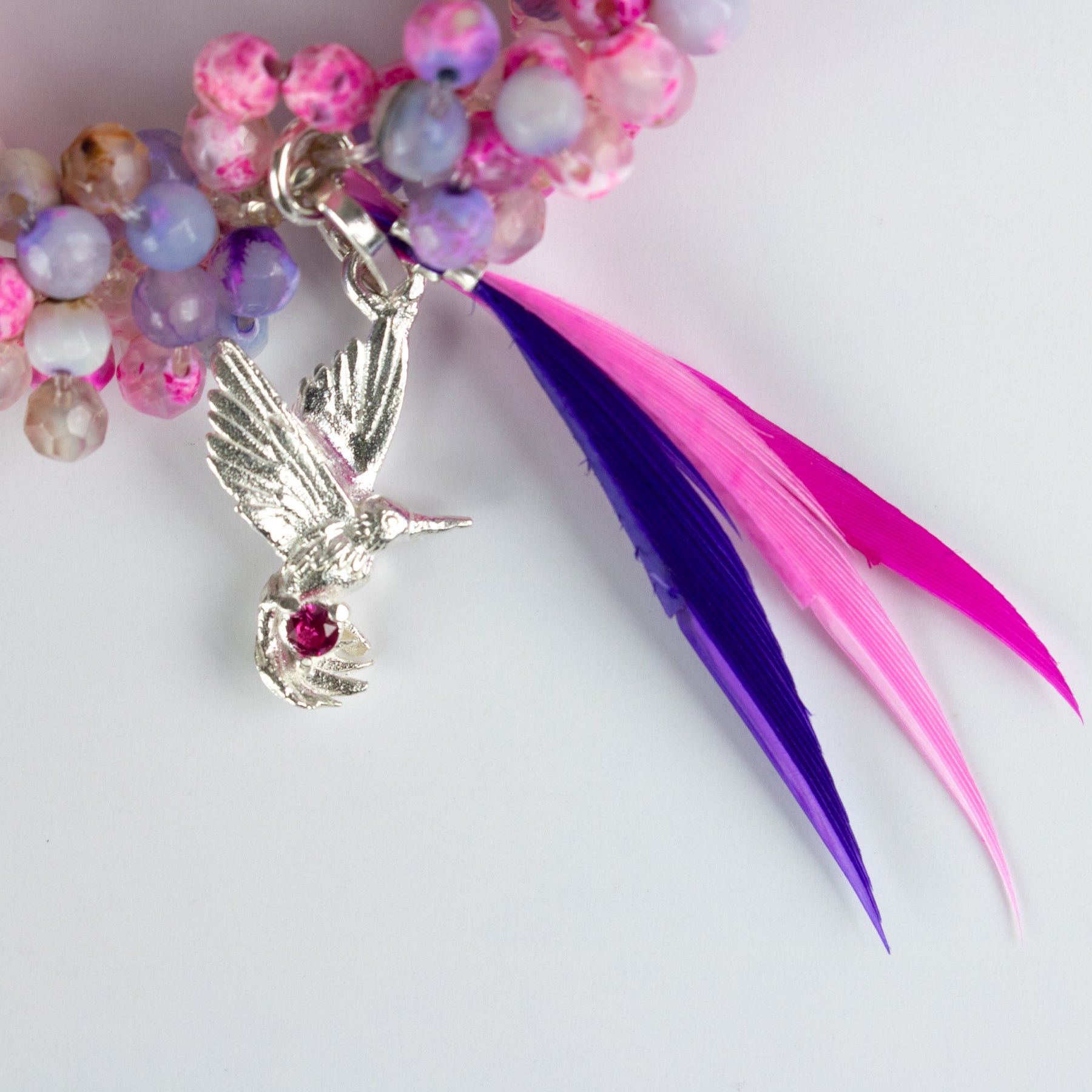 Composición: Ágata de colores, plumas sintéticas y plata mexicana .925