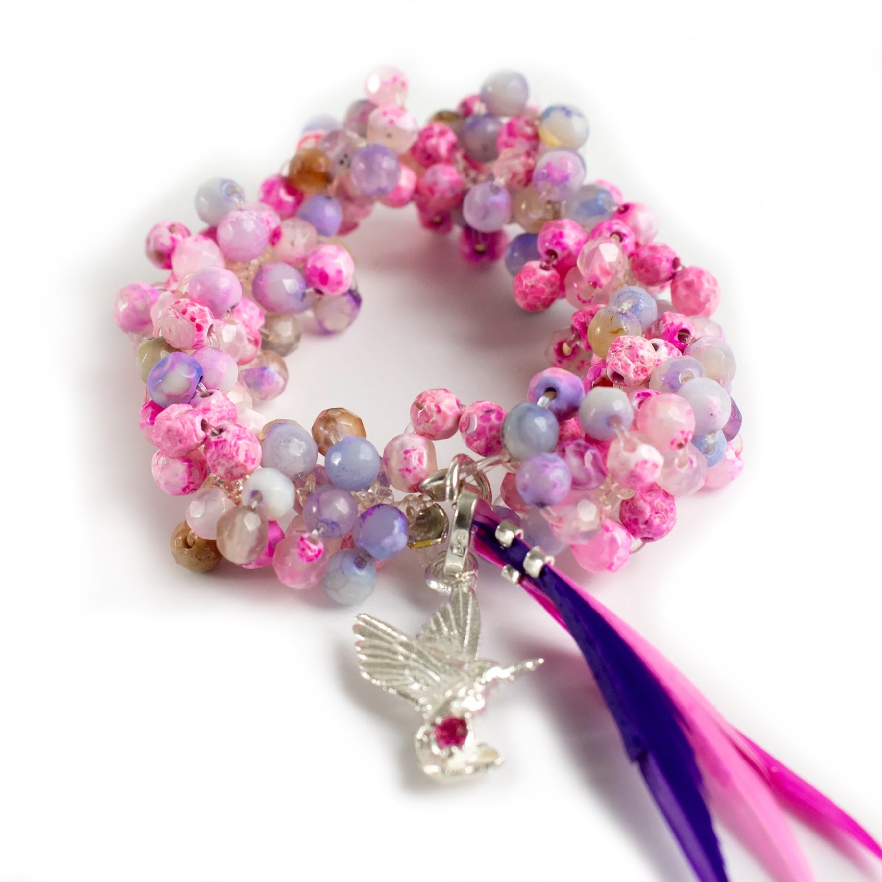 Pulsera de ágata en tonos rosas Anudada - Modelo COLIBRÍ PASTEL