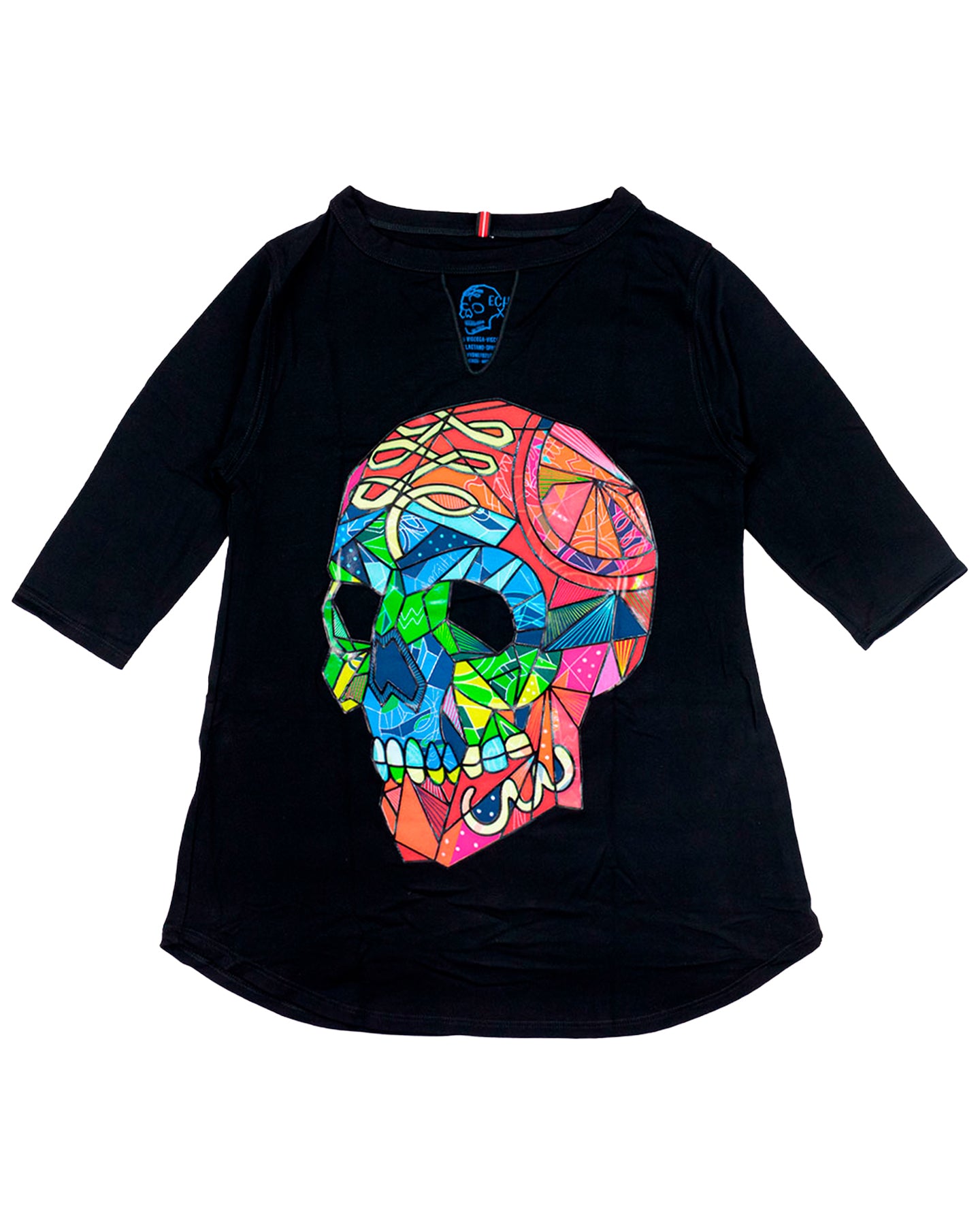 Diseño inspirado en los vitrales y las calaveras de azúcar.