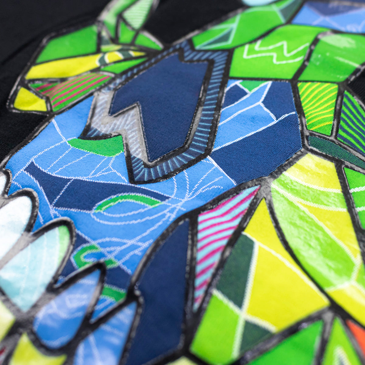 Cuenta con aplicación de tinta gel que resalta los bordes negros del diseño.