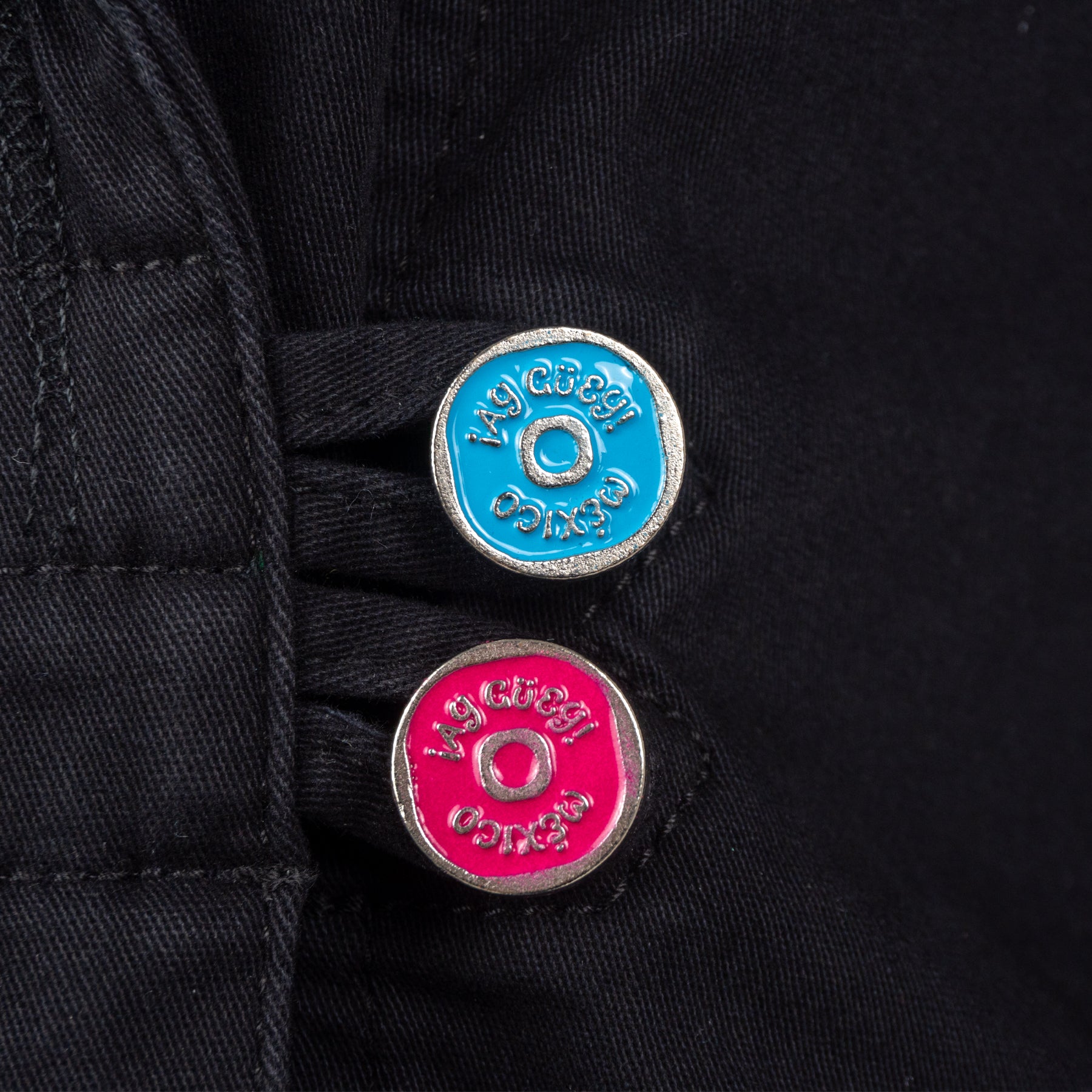Cierre broches cruzado en contra, capucha con Terminado en solapa, forro con sublimado.