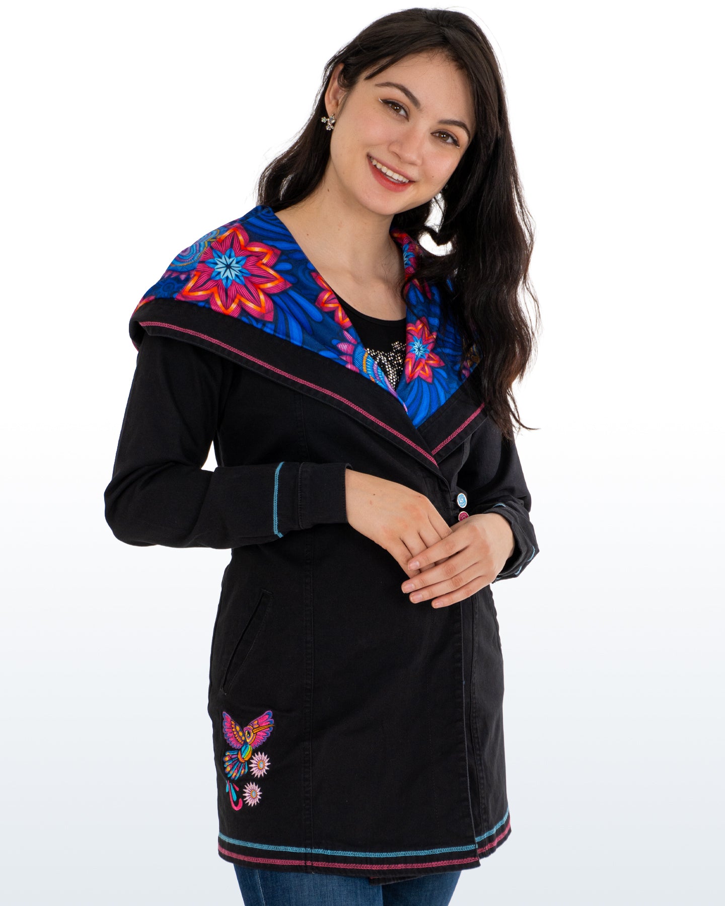 Gabardina para mujer Modelo LOLA con cierre cruzado y gorro sublimado - PEPITA