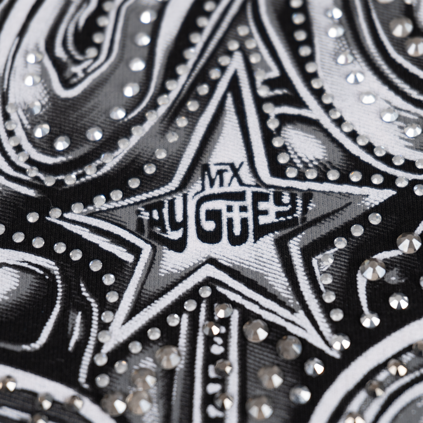 Playera estampada para hombre con aplicación de pedrería brillante - Modelo ESPACIAL