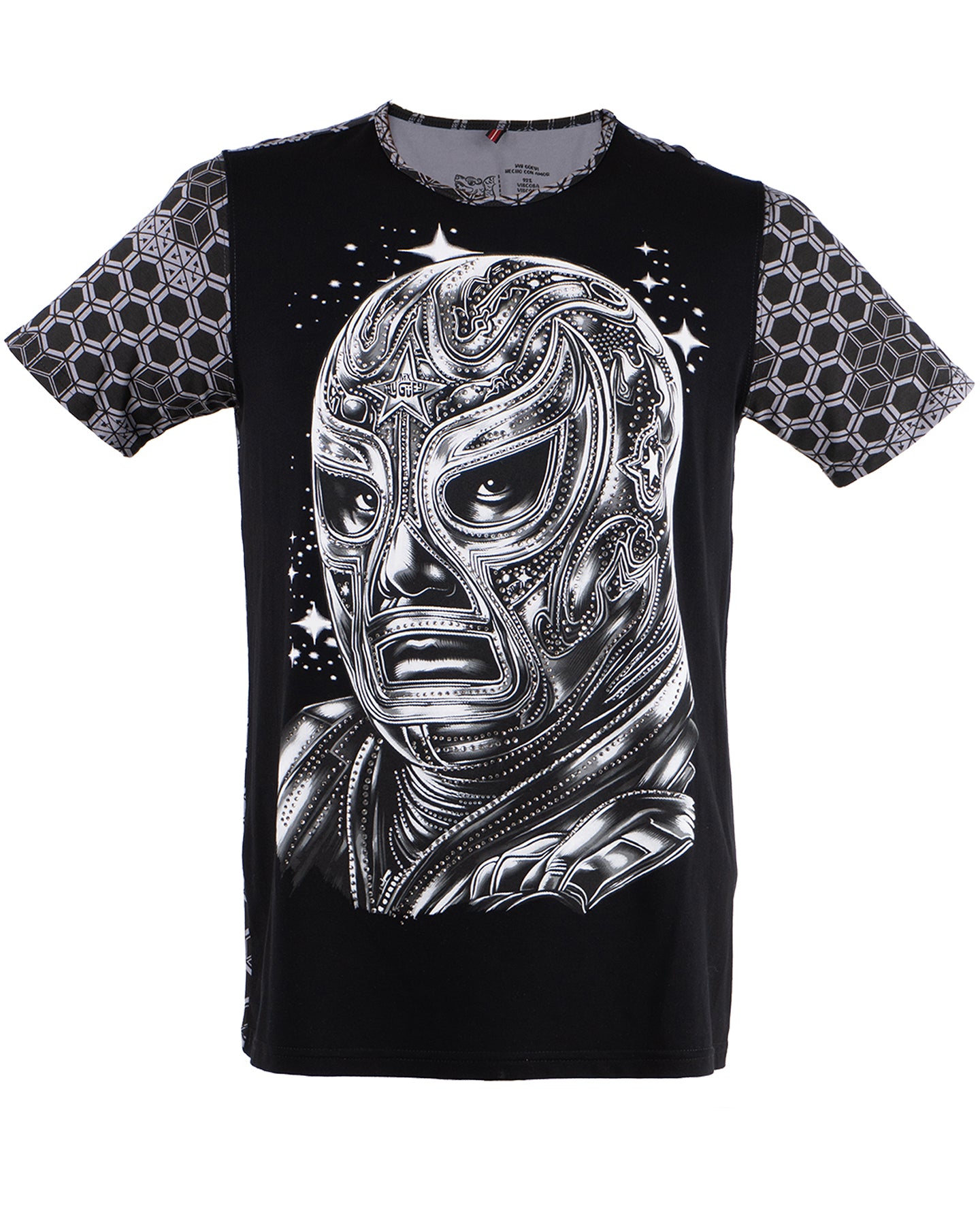 ¡La playera de caballero Espacial te llevará al espacio y te hará sentir como un verdadero luchador! Inspirada en películas de luchadores, su manga y espalda estampadas resaltan tu estilo y pasión por la lucha. ¡Hazte con ella y siente la emoción en tu piel!
