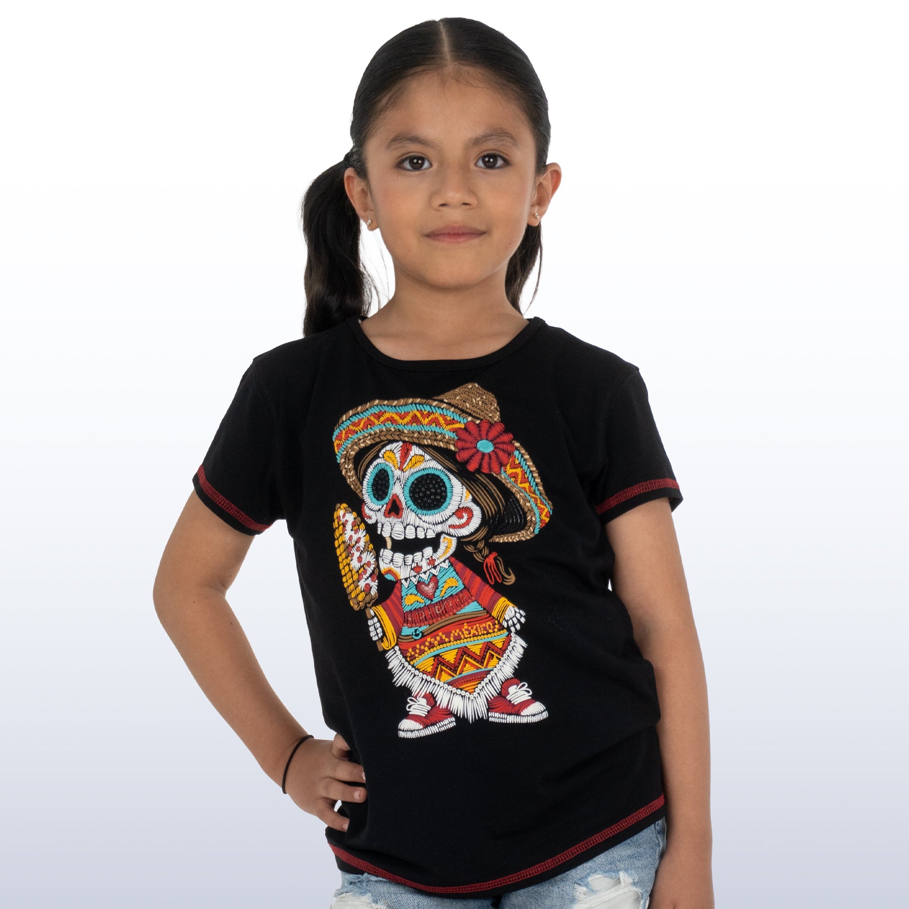 Playera estampada con aplicación de tinta gel HD transparente para niña - Modelo LA QUE NO PICA