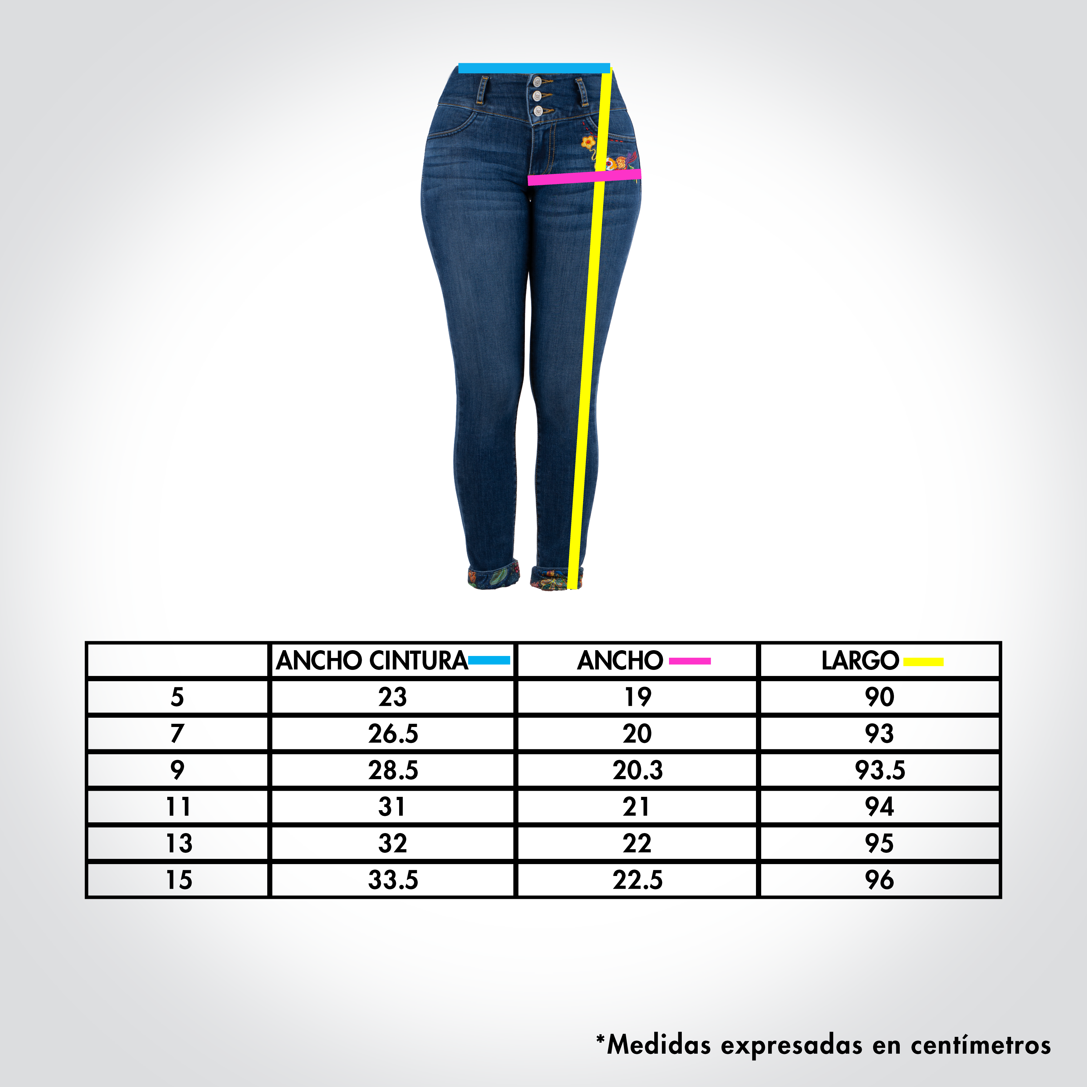 Jeans Push-Up de mujer modelo “QQ3” con detalles bordados - GUANABANA