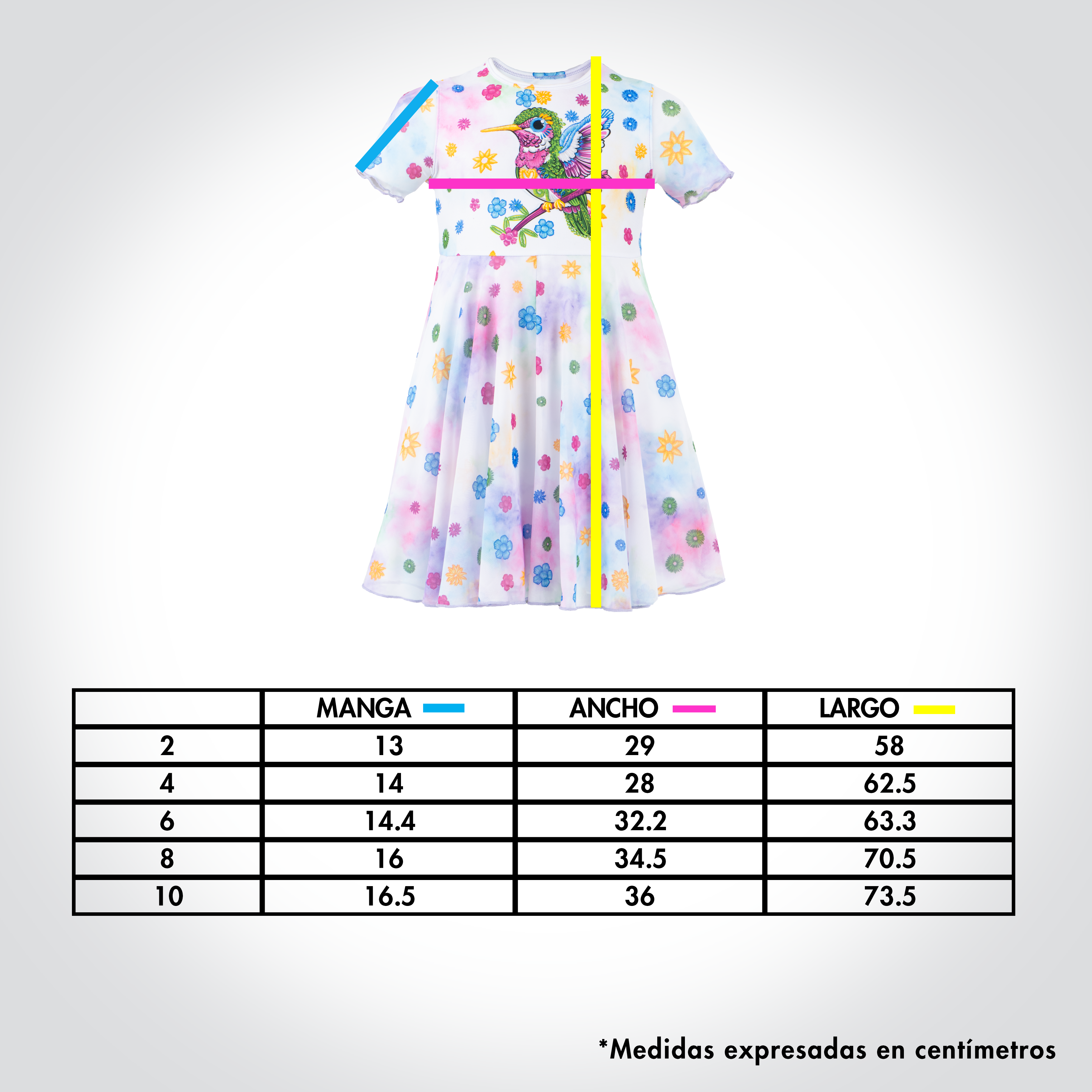 Vestido de niña con estampado de colibrí- Modelo SOÑADO