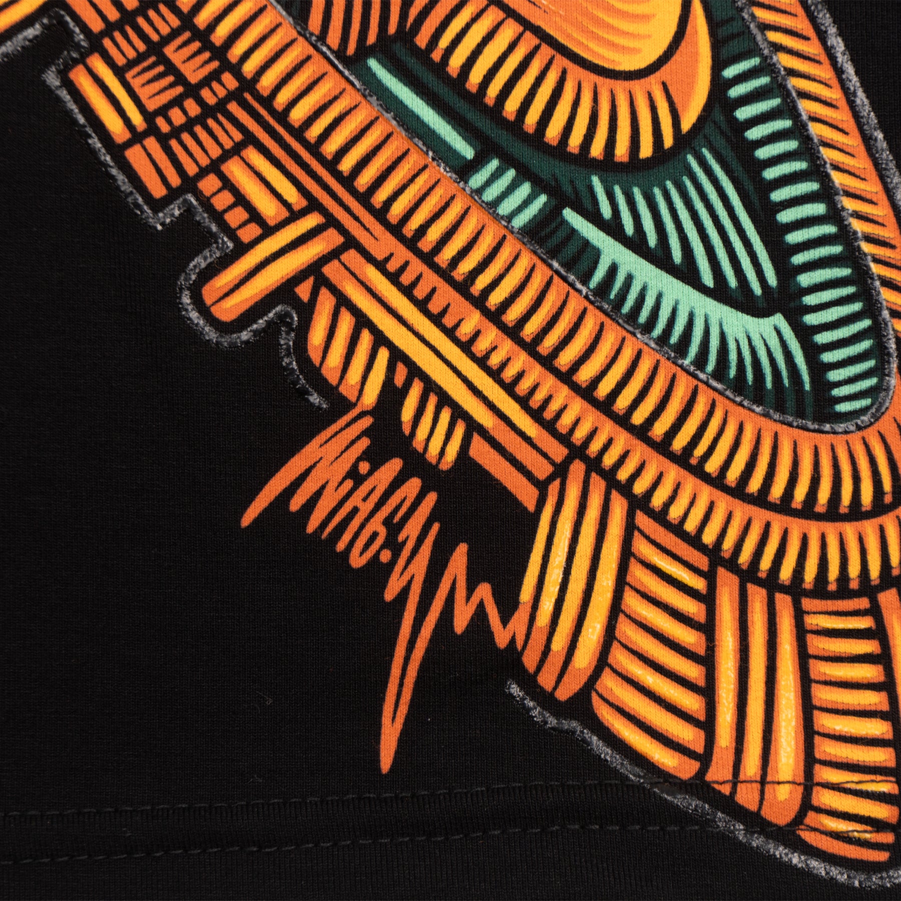 El águila es un símbolo de poder, libertad y visión al mezclarlo con la técnica de tejido de mimbre se busca transmitir el valor de lo natural, lo renovable, la fuerza y durabilidad de este material ya que estos valores se relacionan con la fuerza del guerrero y su adaptabilidad en un diseño visualmente impactante y significativo.