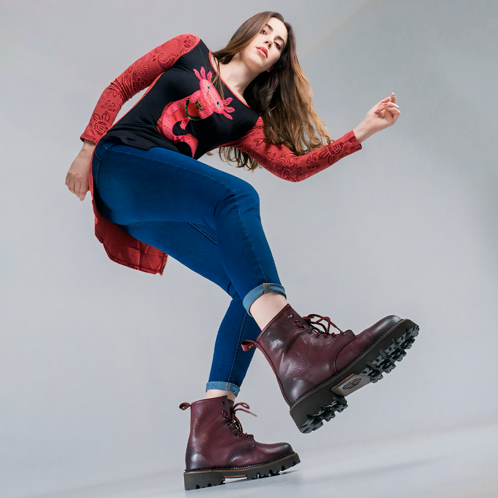 Botas de piel con grabado en relieve para mujer - Modelo LA CARDENAL