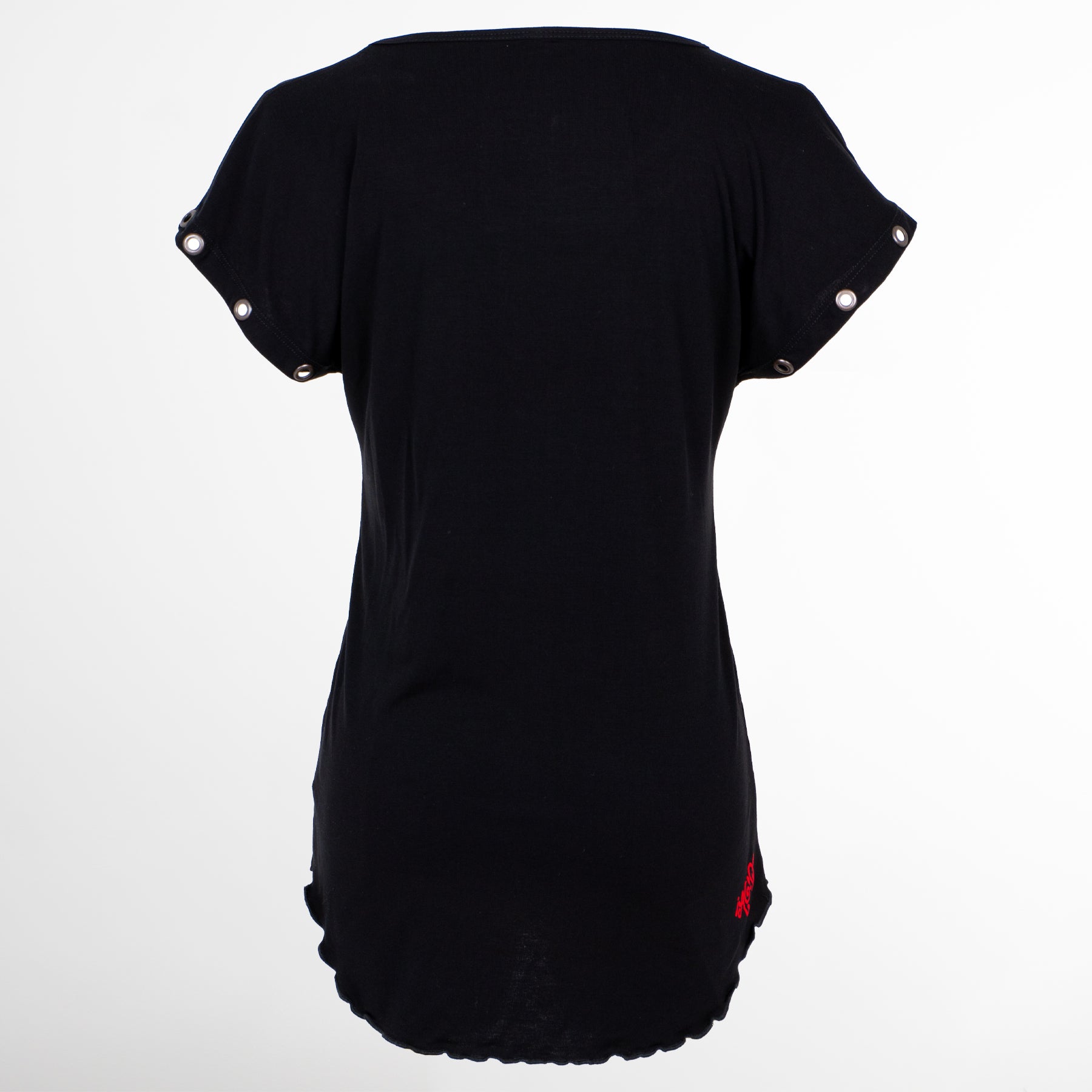 🔸Blusón curvo estampado con aros metálicos en mangas - Modelo AZU-LIA