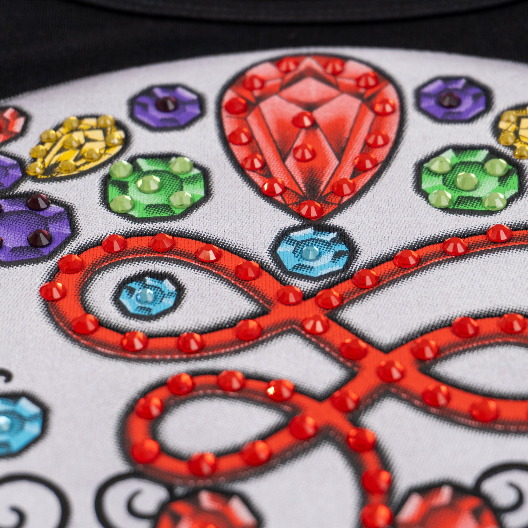 ♦️Playera estampada con aplicación de pedrería para mujer - Modelo CENTELLA