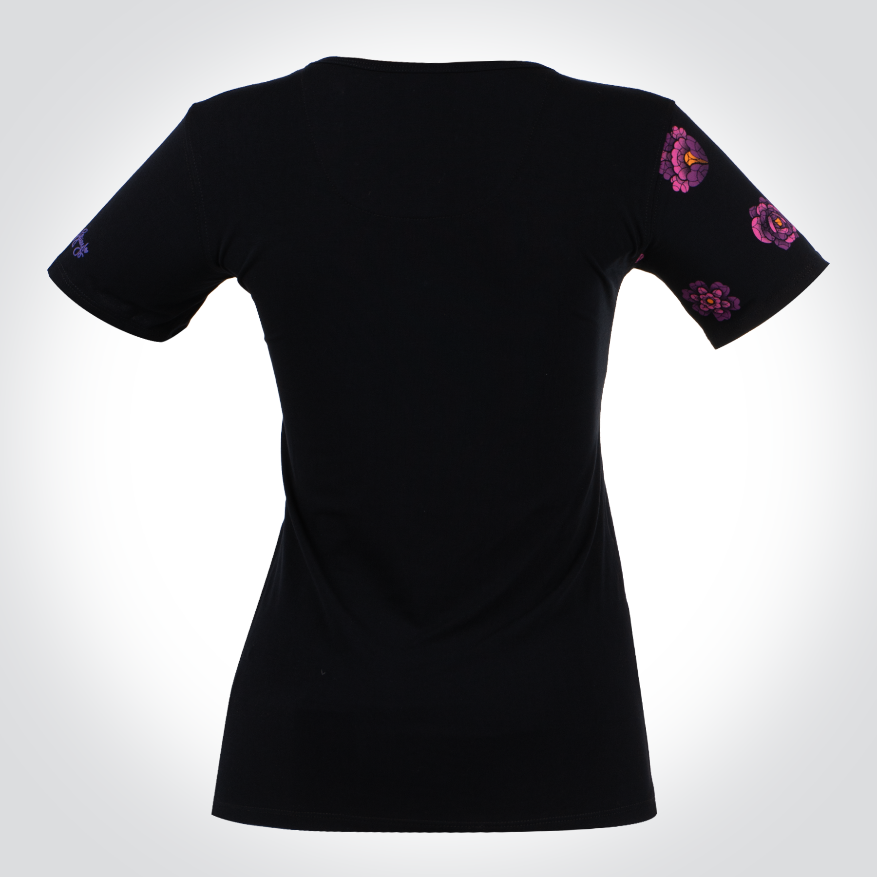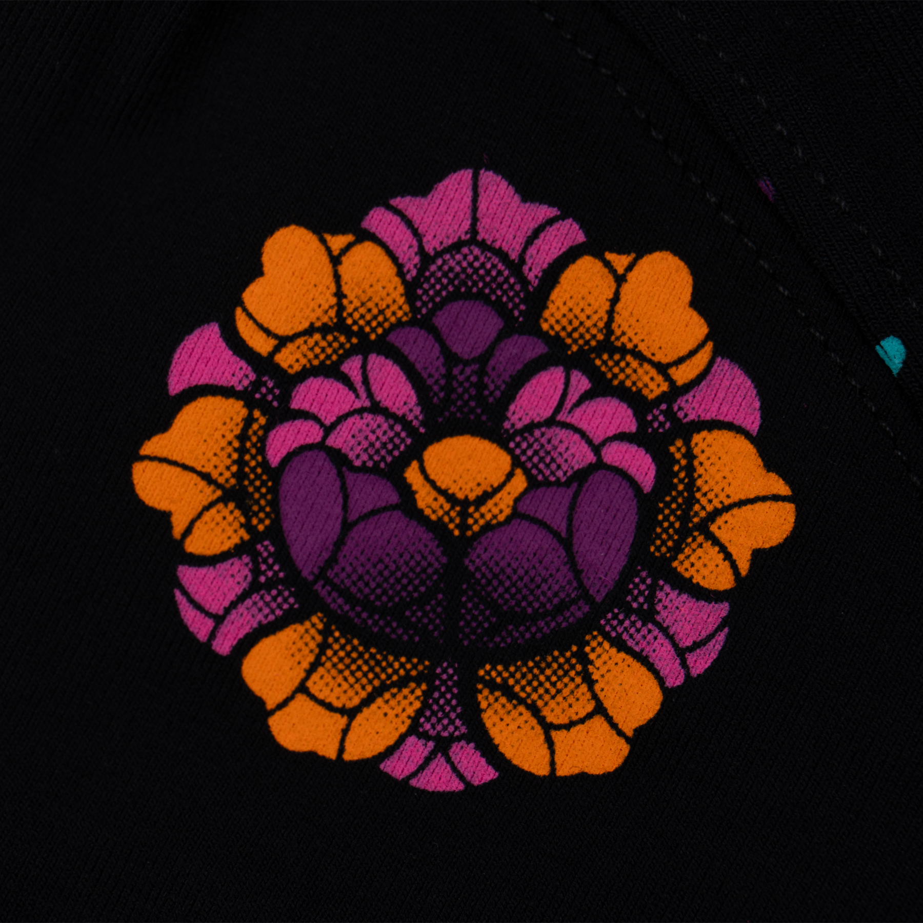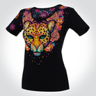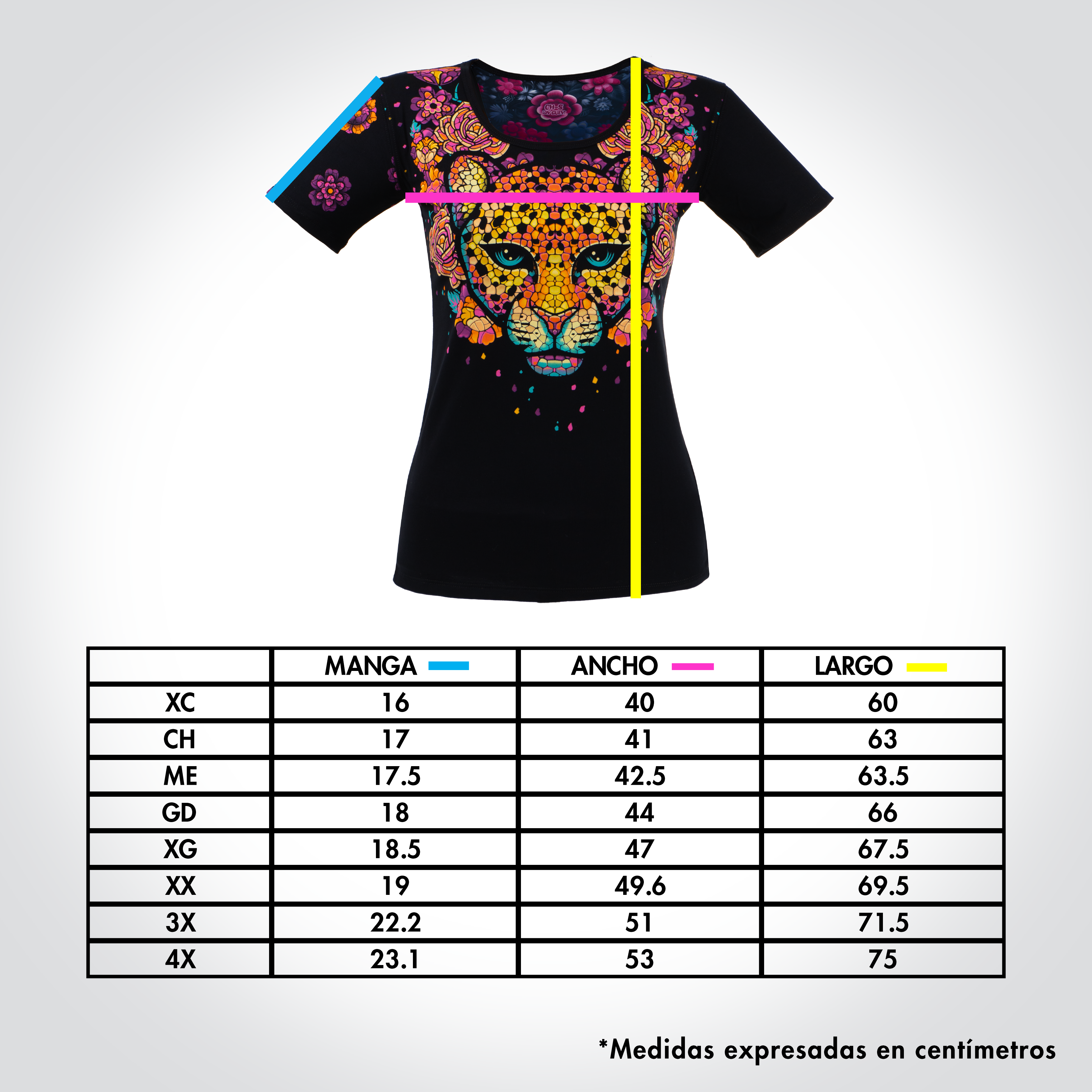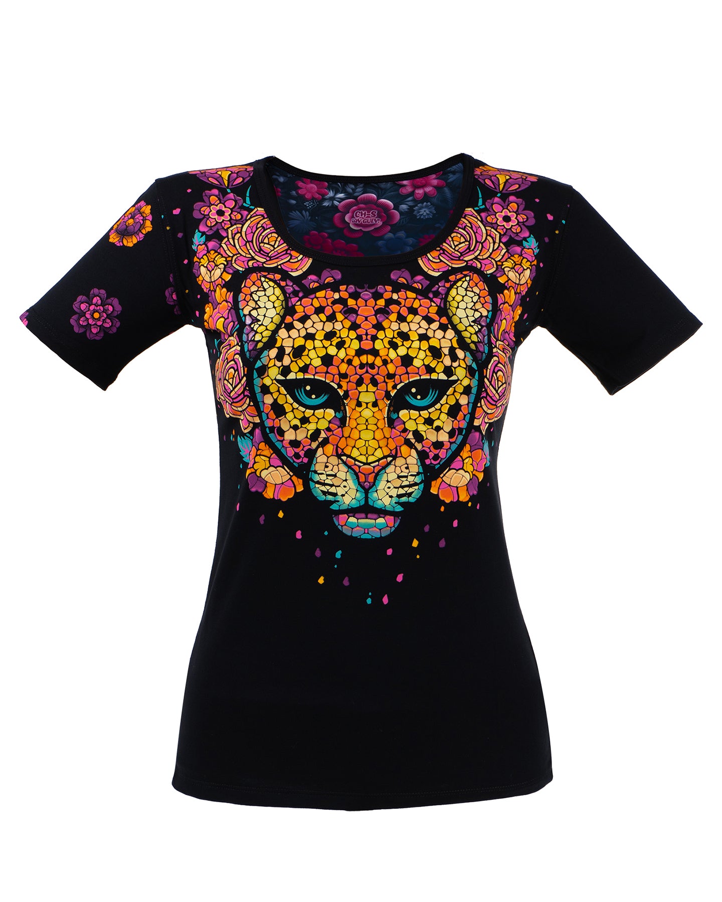 Playera en color negro con un estampado en full print, esta inspirado en el balam mexicano y el arte en vitral.