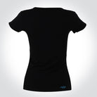 Playera de dama corte básico, manga corta y cuello redondo con abertura en V.