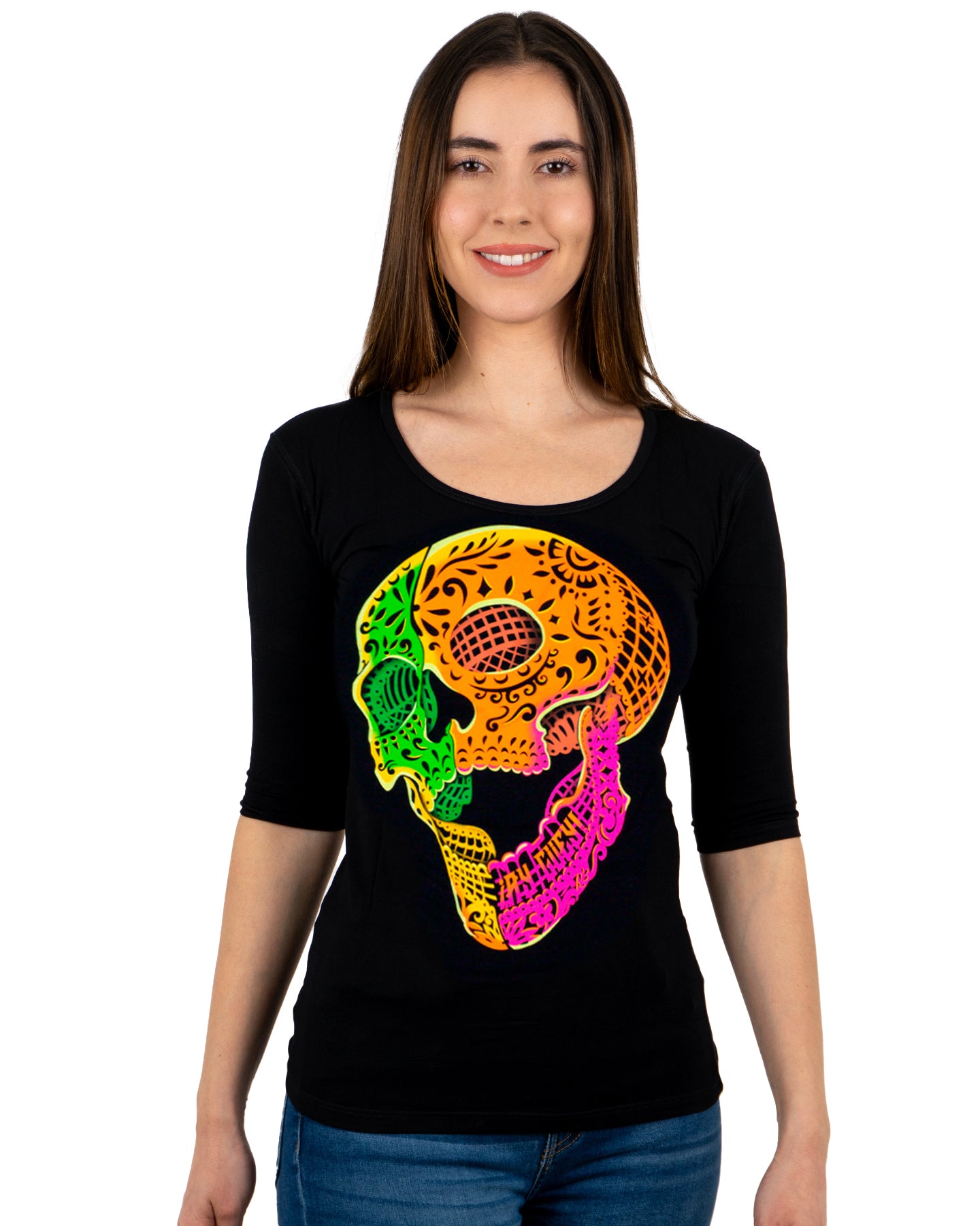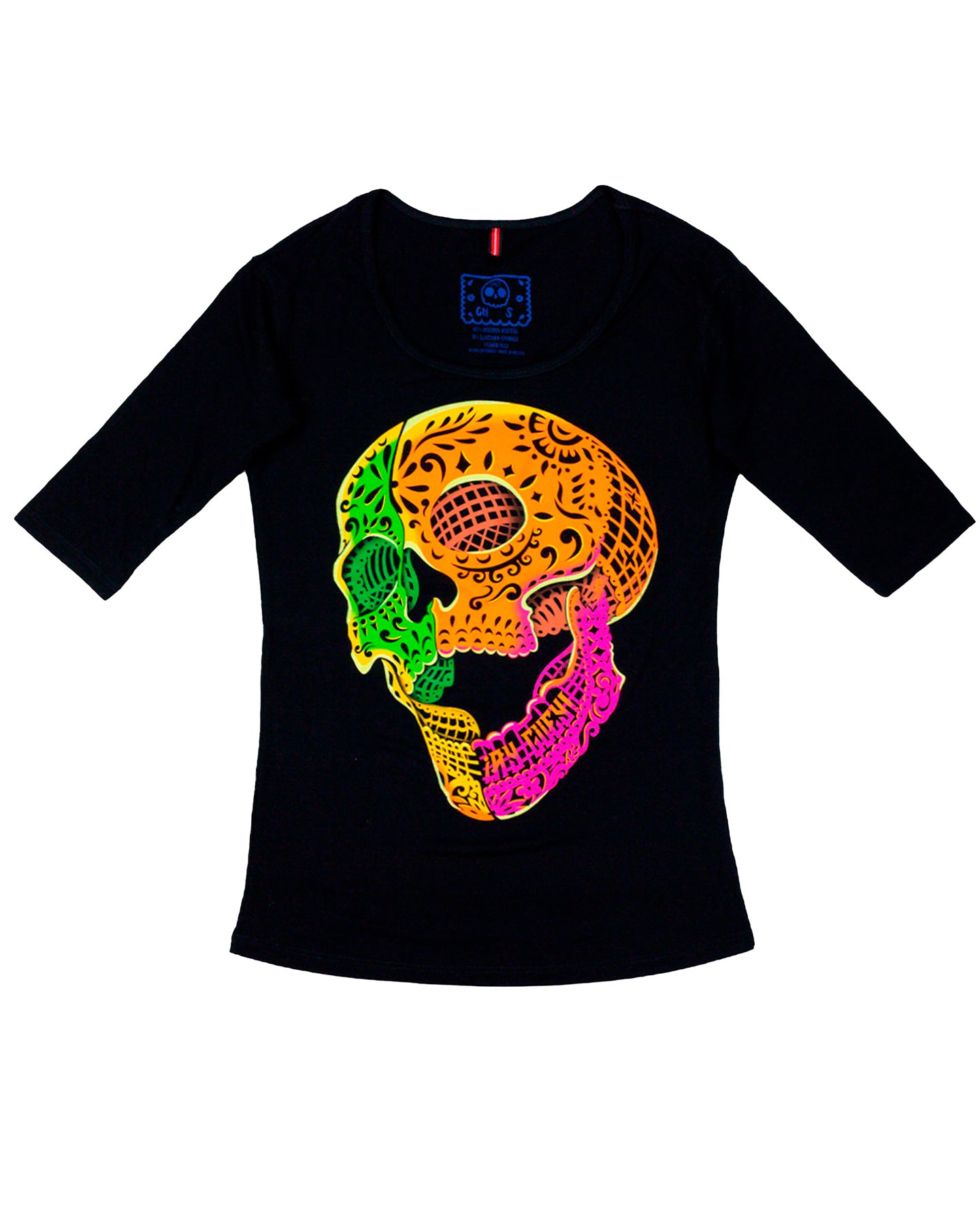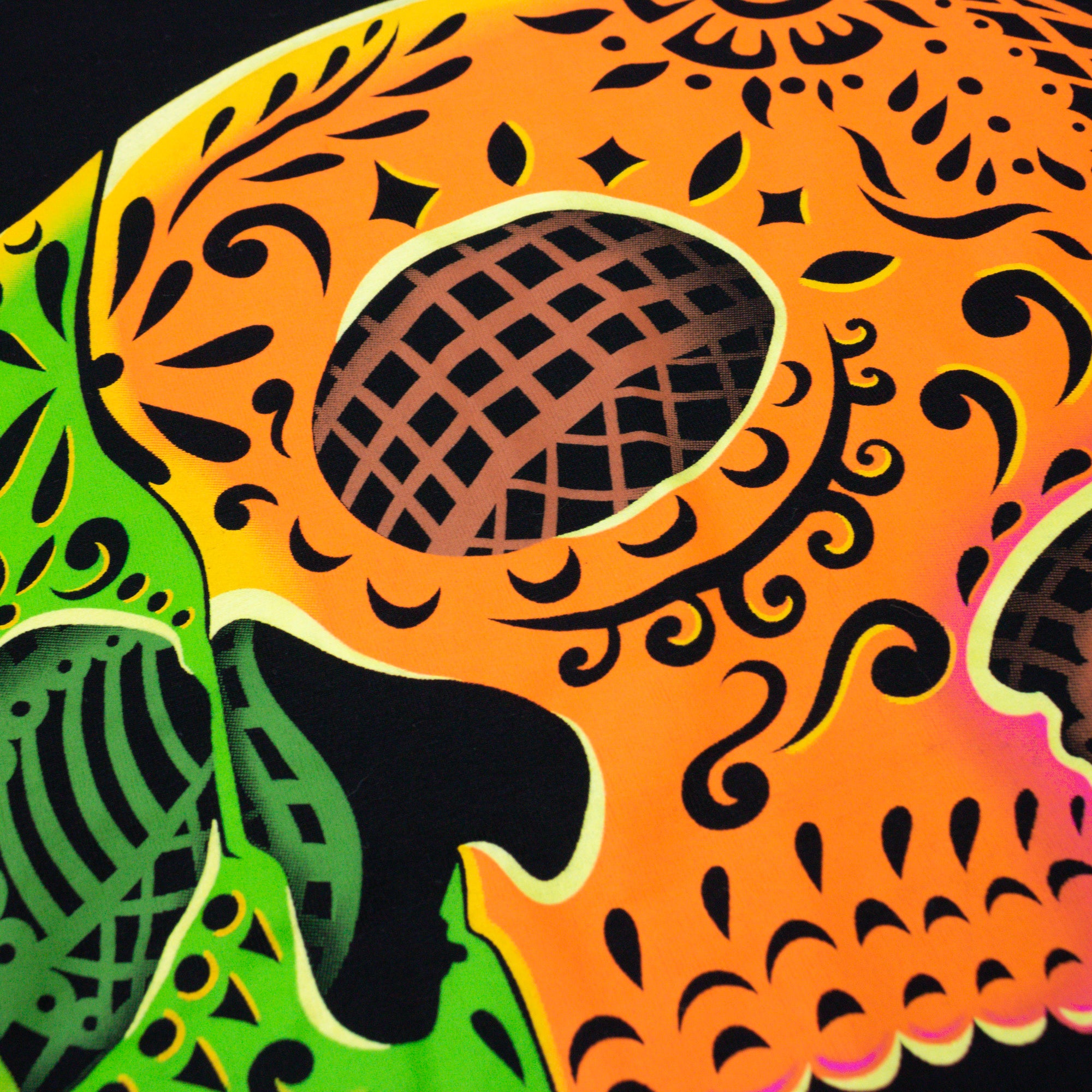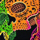 Diseño inspirado en la celebración de día de muertos, el papel picado y las calaveras de azúcar.
