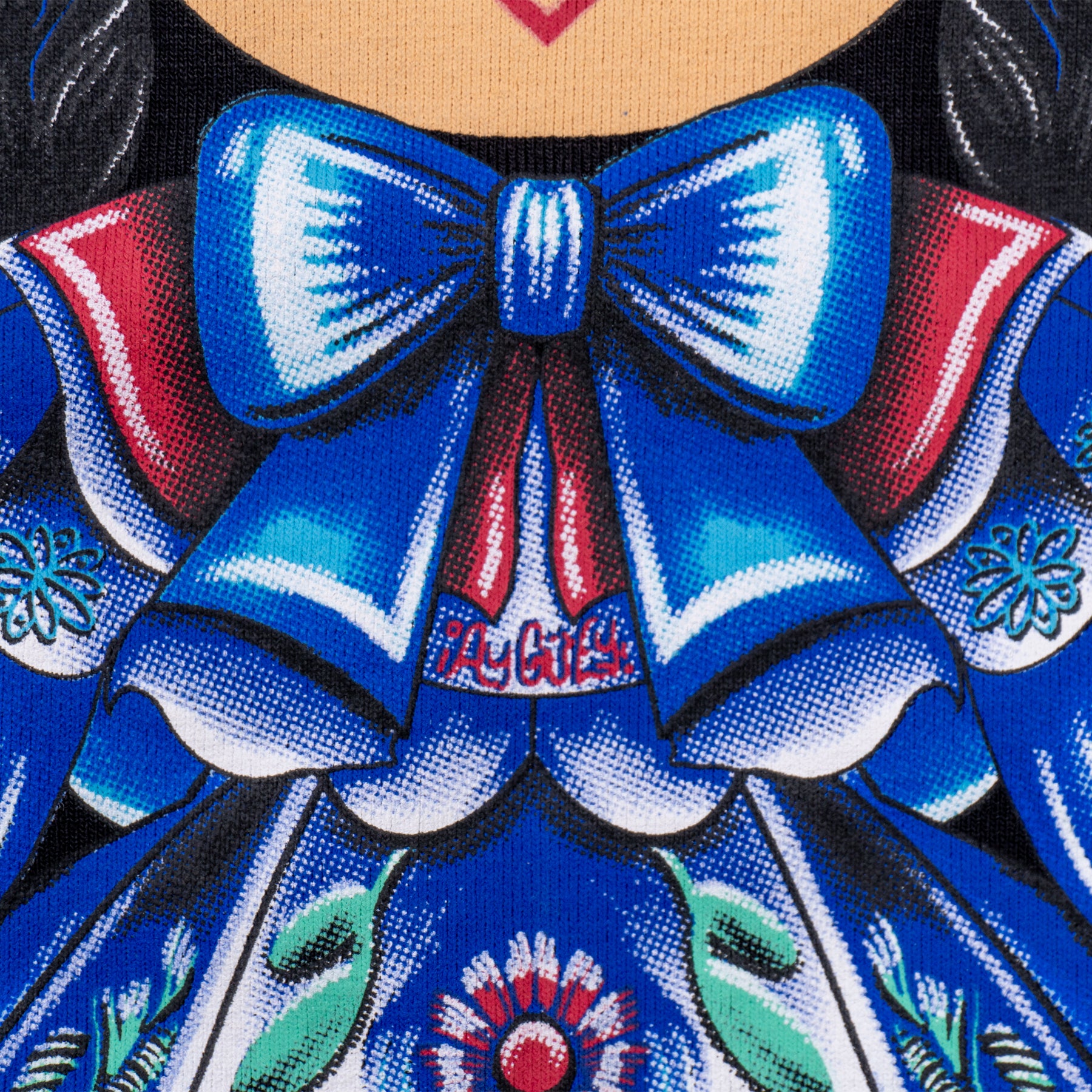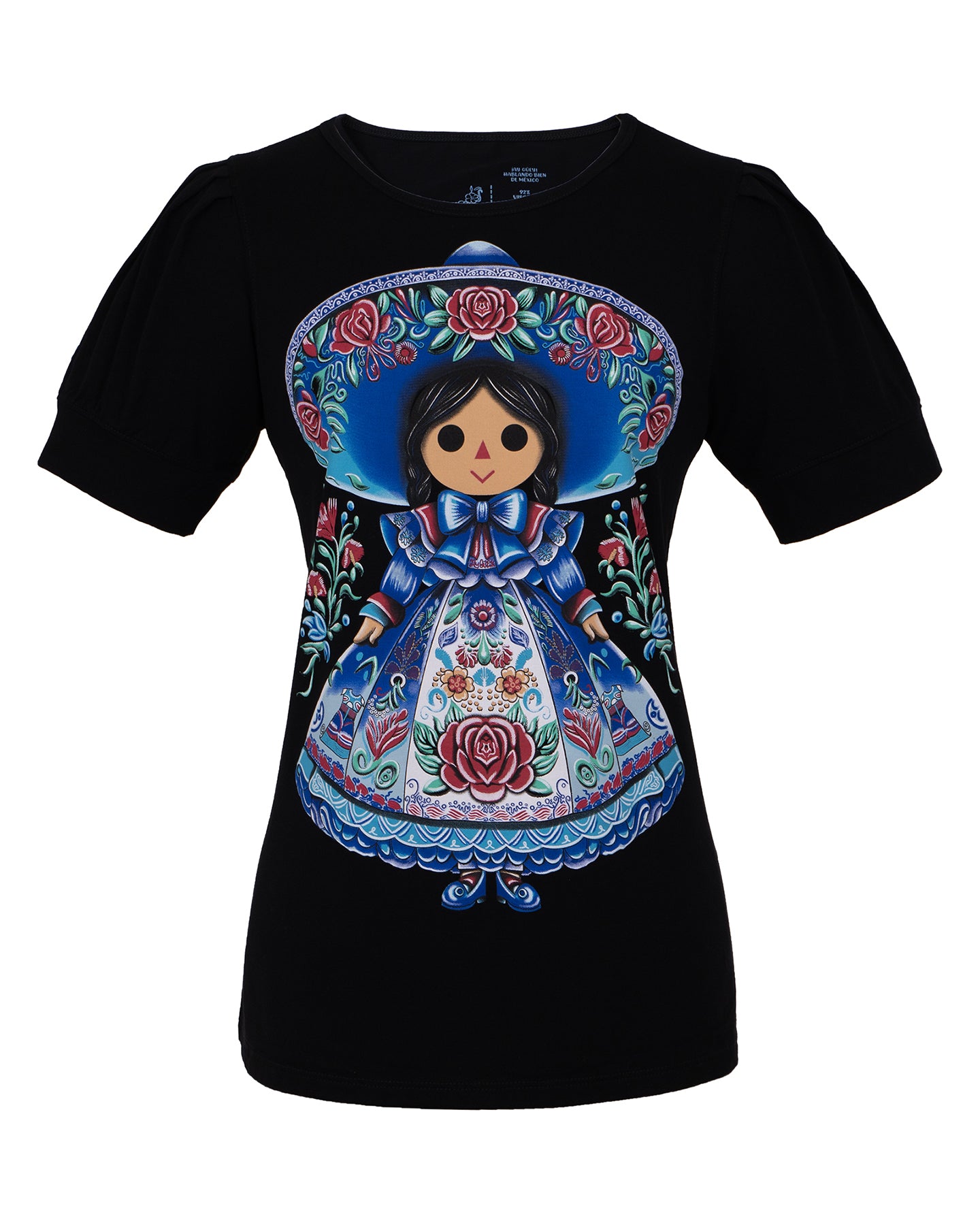 ♦️Playera estampada con manga bombacha para mujer - Modelo LA MUÑECA AZUL