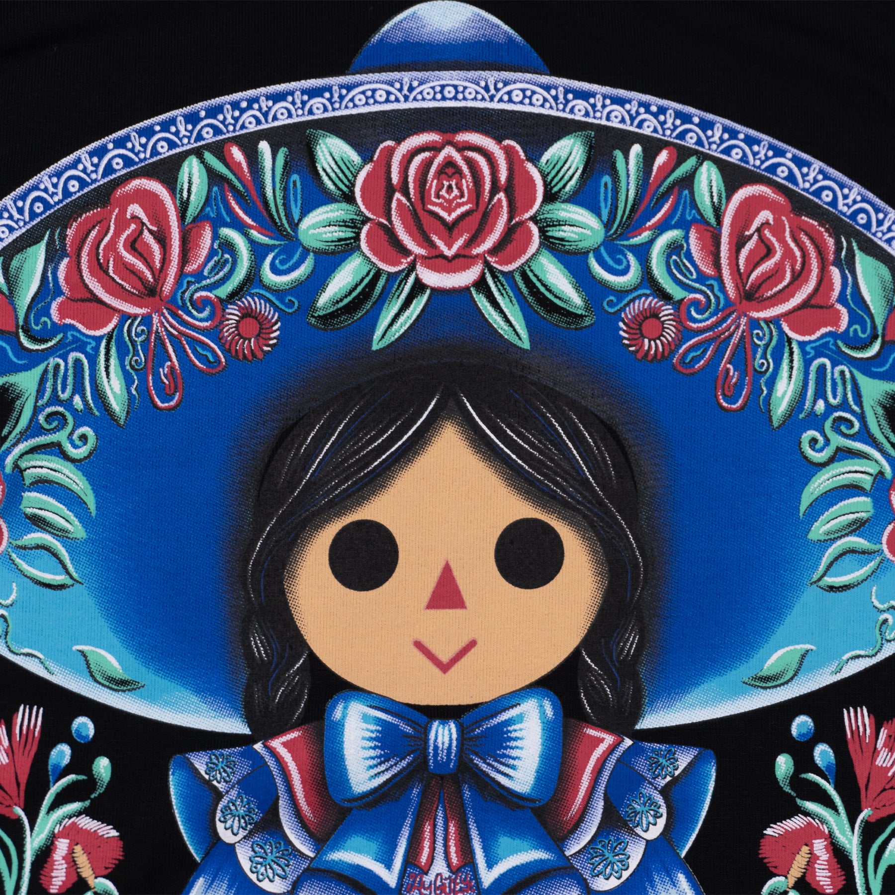 Nuestra ya famosa muñeca Petrita, se viste de gala con un traje típico mexicano con los tradicionales bordados florales hechos por manos artesanas, a lo largo y ancho del país encontrarás este tipo de muñecas que al principio se crearon para venderse en los mercados de artesanías a un menor costo que las muñecas de porcelana provenientes de España.