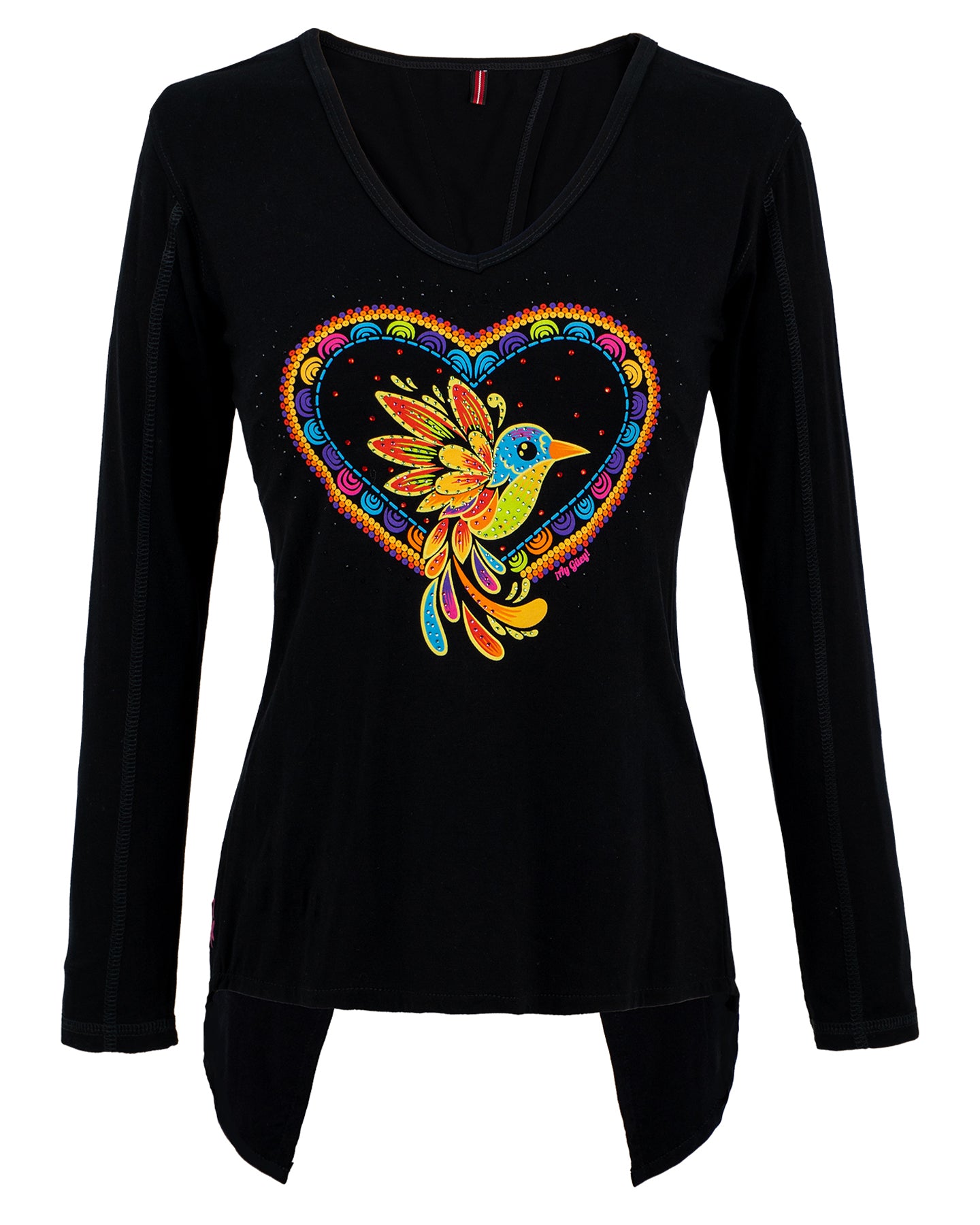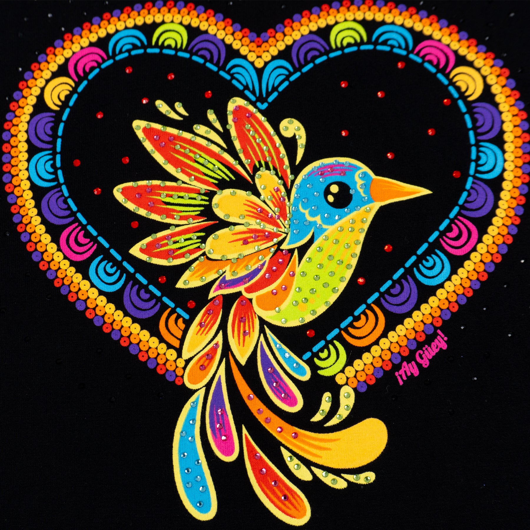 Inspirada en el colibrí, símbolo de la libertad y la belleza, esta prenda te transportará a los rincones más coloridos de México. El corazón está inspirado en las cuentas del arte huichol y las artesanías que celebran la rica historia de nuestro país, es una pieza que refleja el alma de nuestra cultura.