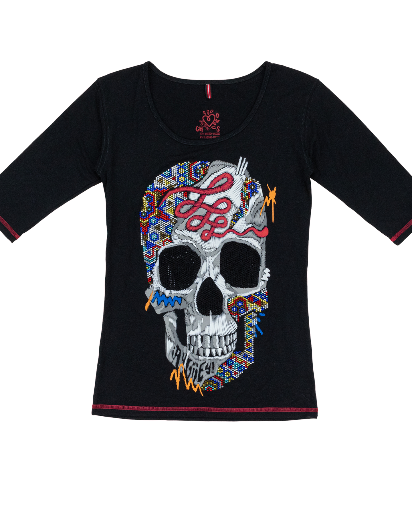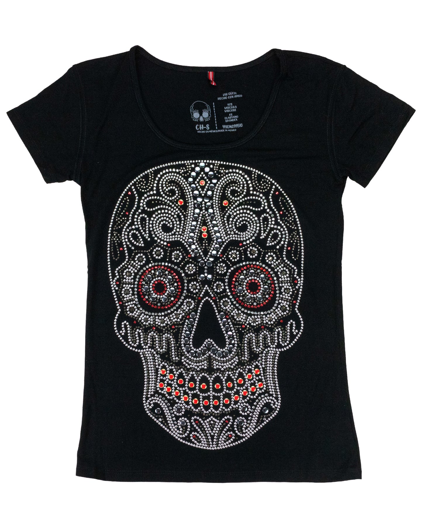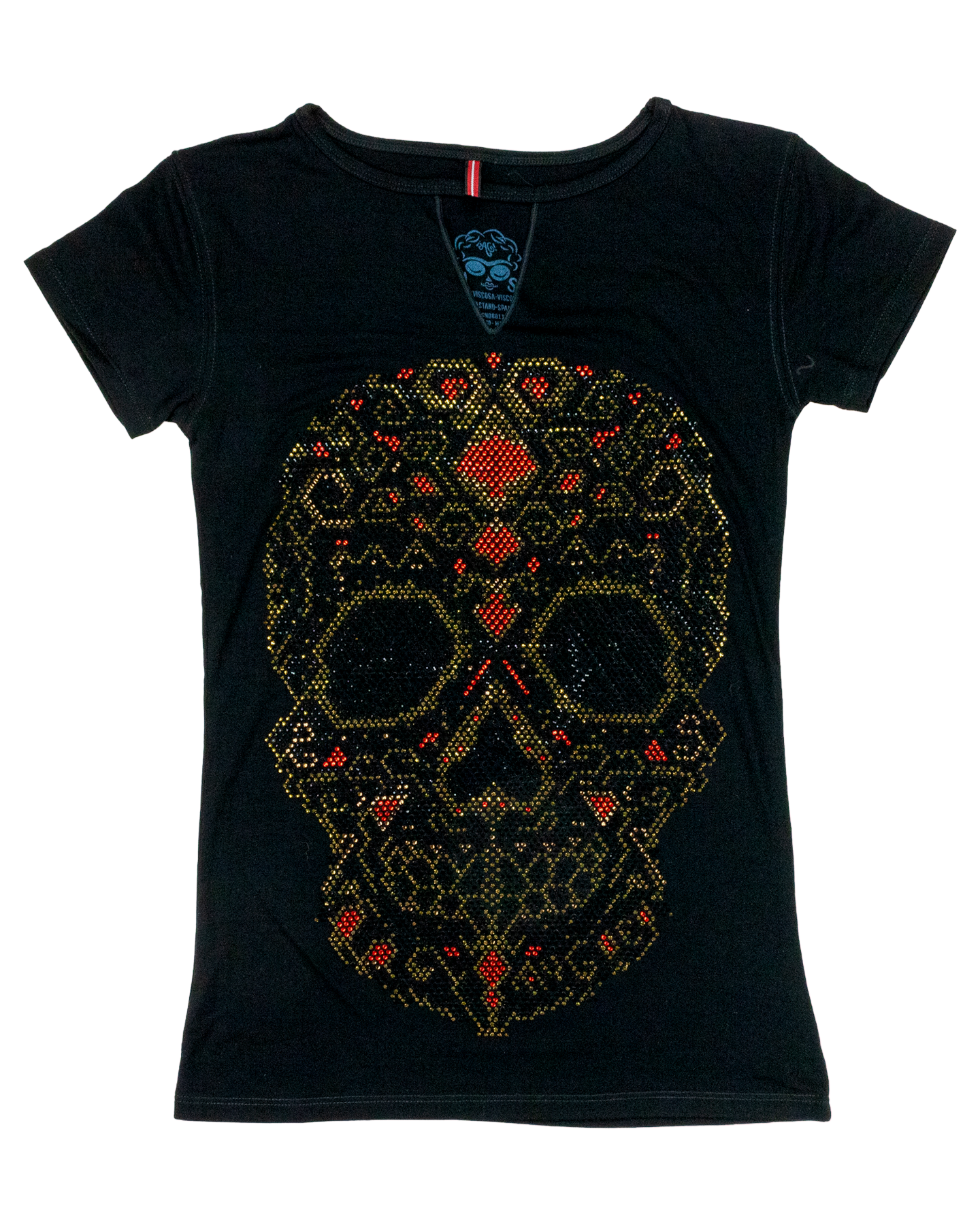 ♦️Playera estampada con aplicación de pedrería brillante para mujer - Modelo AGUIRRE