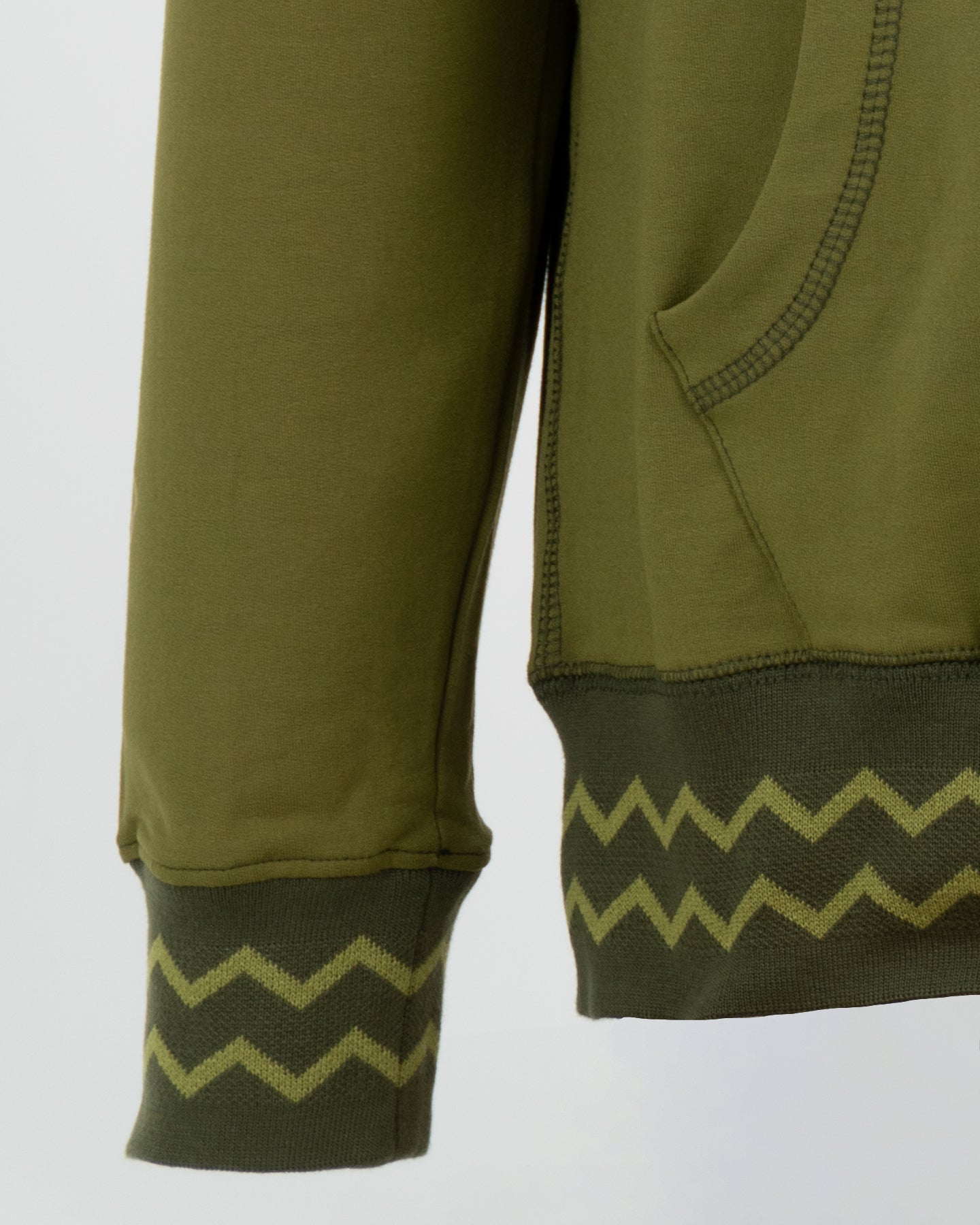 Toque de Raíz: Los puños y el borde inferior incorporan un patrón geométrico en zigzag que evoca la iconografía tradicional, añadiendo un profundo guiño a la artesanía y cultura mexicana.