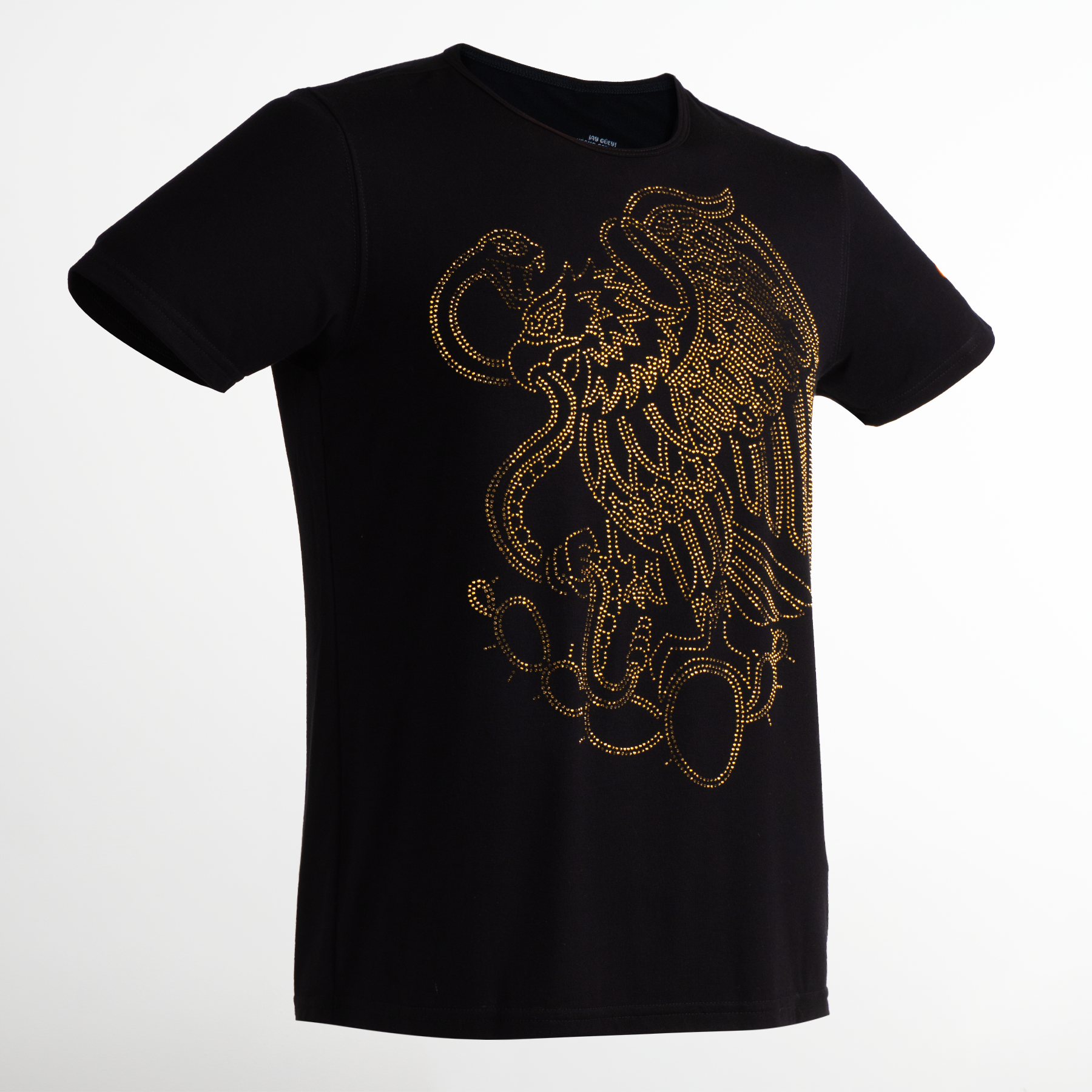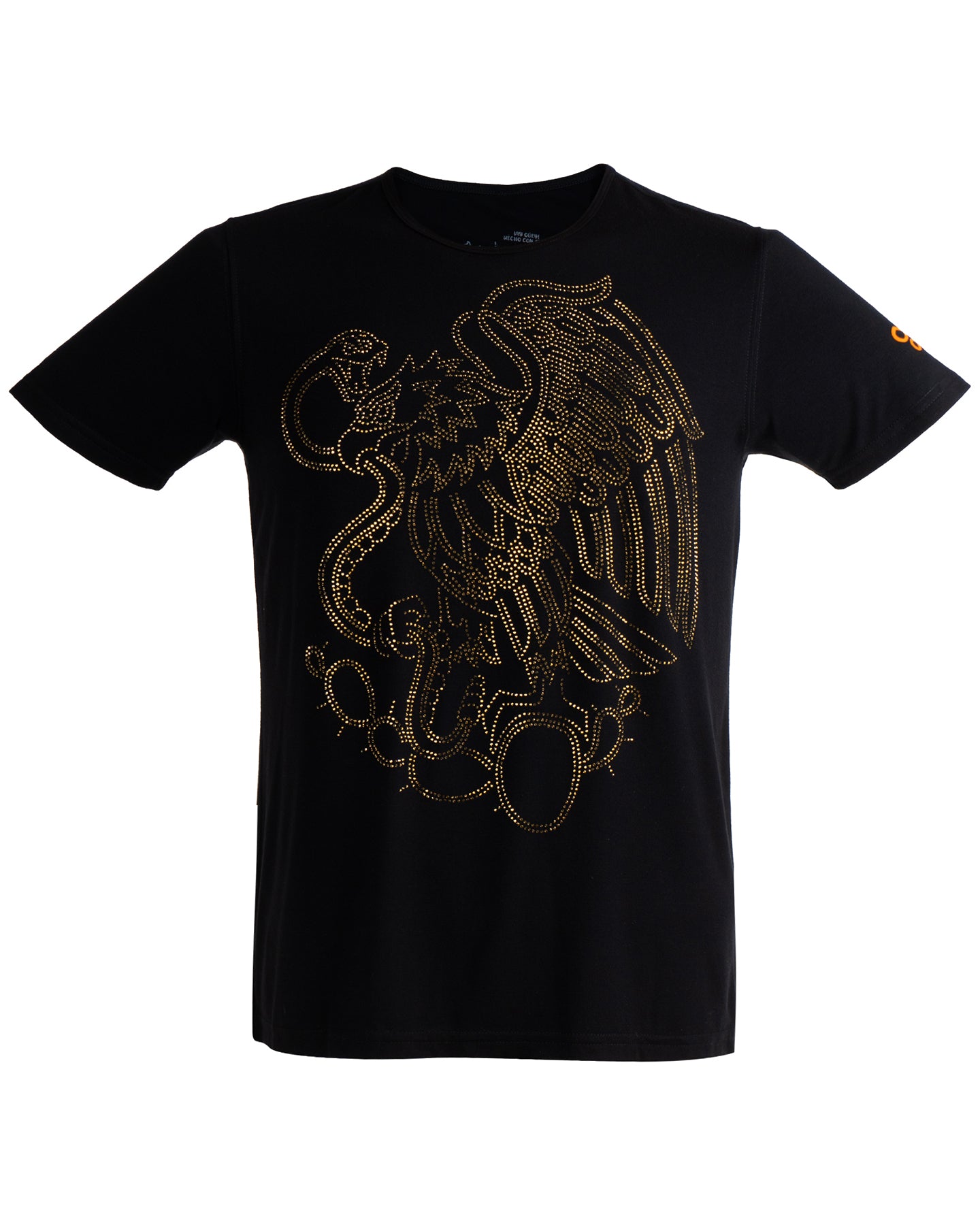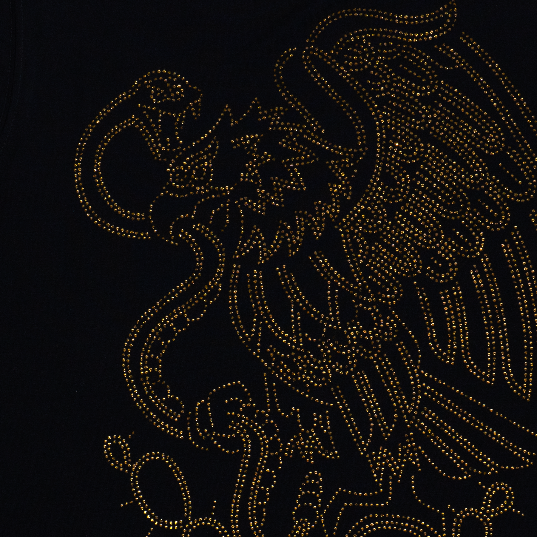 Playera estampada con aplicaciones de pedrería dorada - Modelo UNIDOS