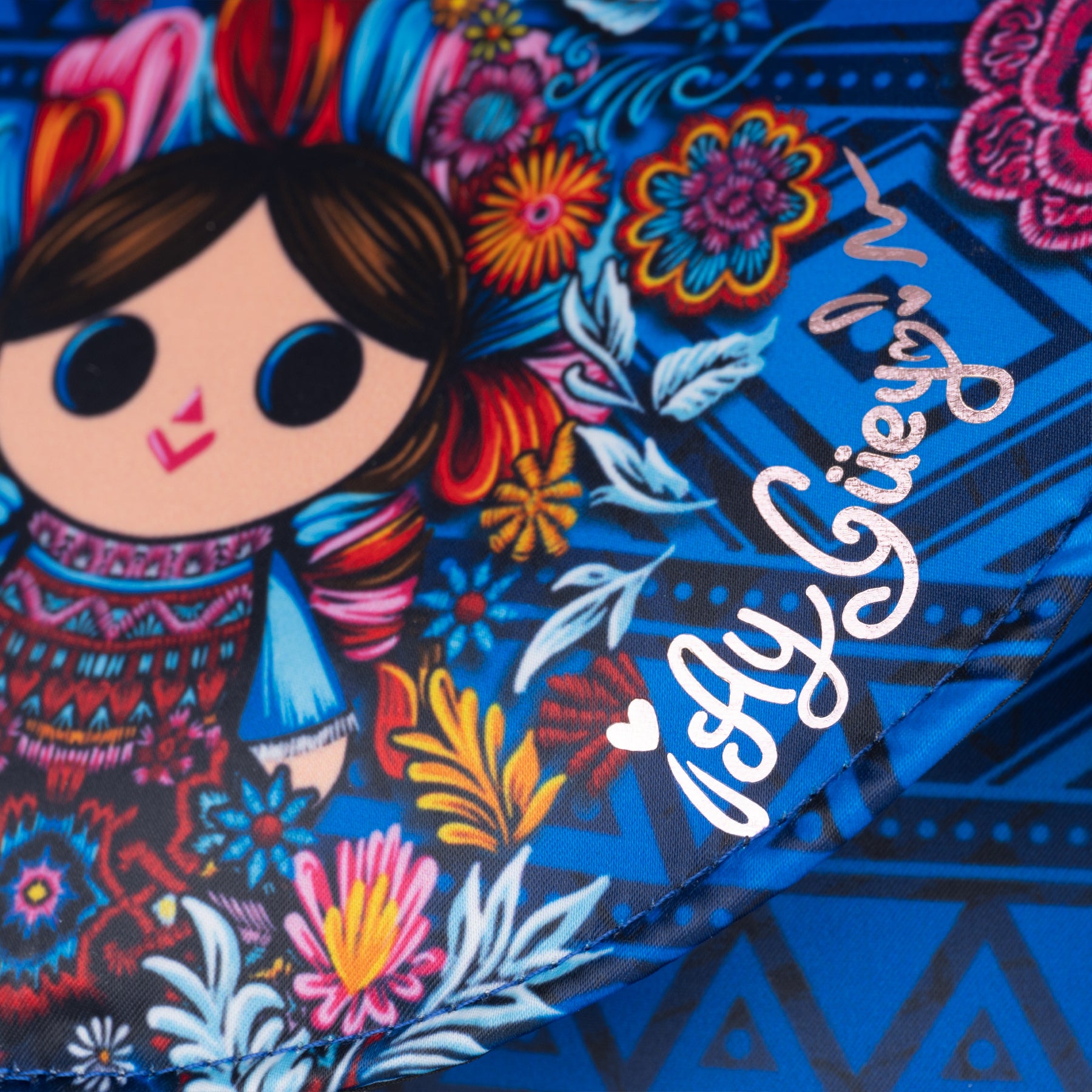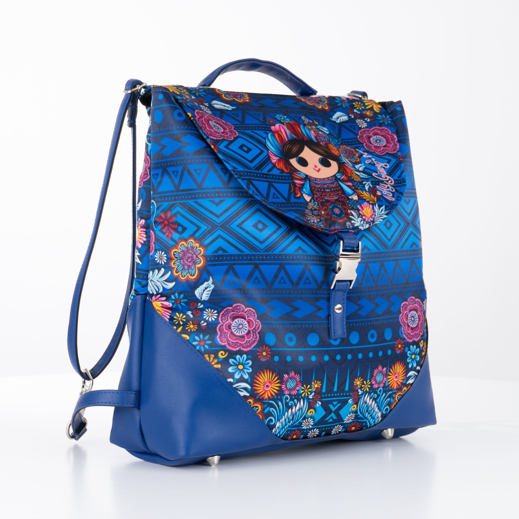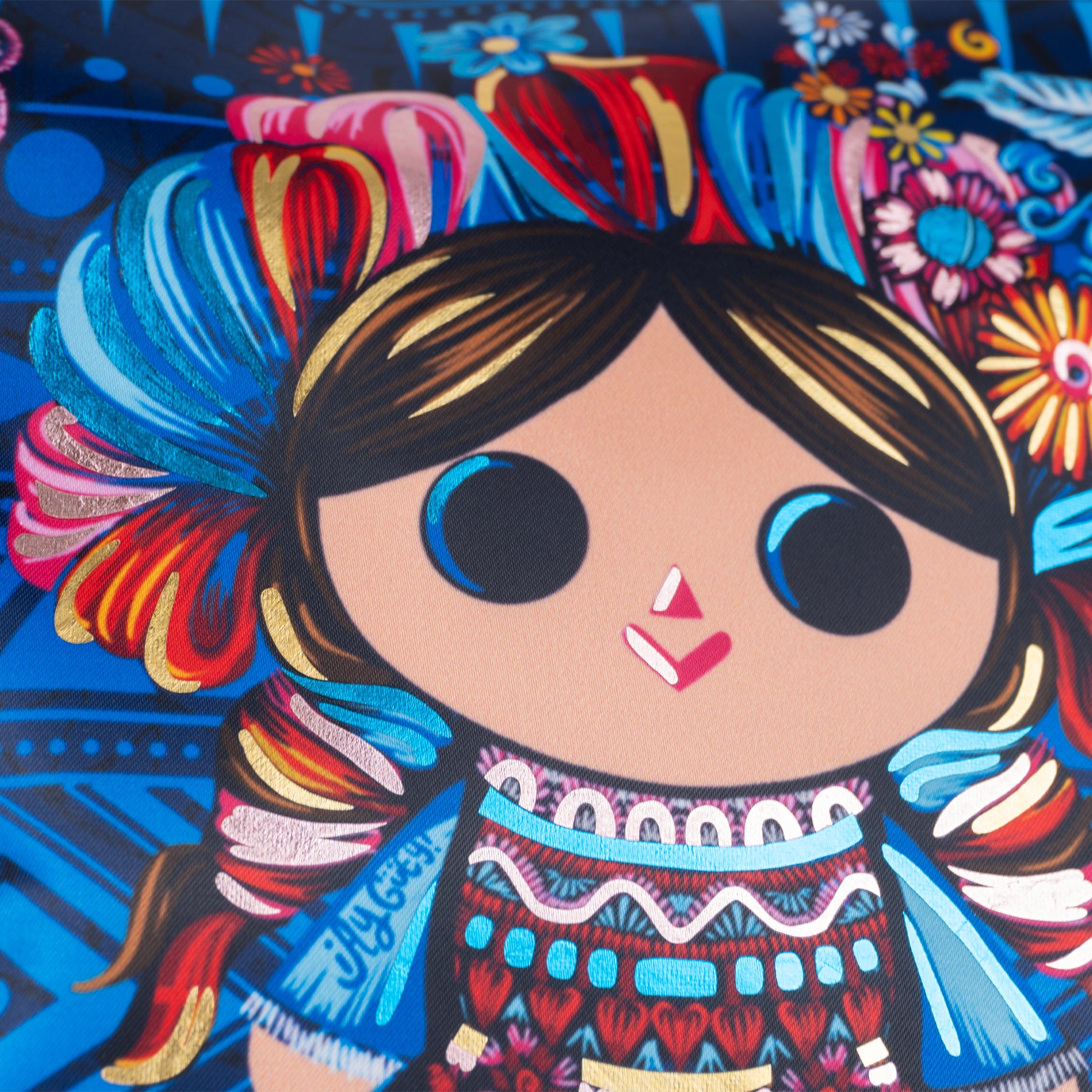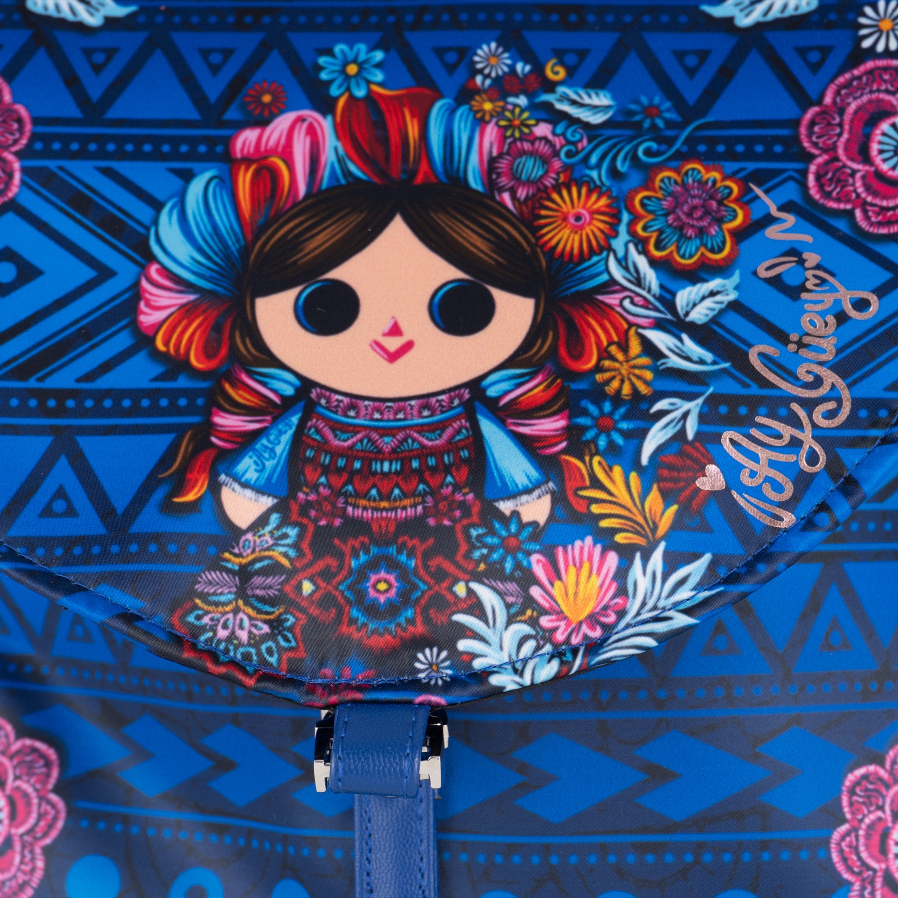 Bolsa con diseño inspirado en los bordados textiles presentes en los trajes típicos que tiene como protagonista a Petrita, nuestra reinterpretación de la muñeca mazahua.