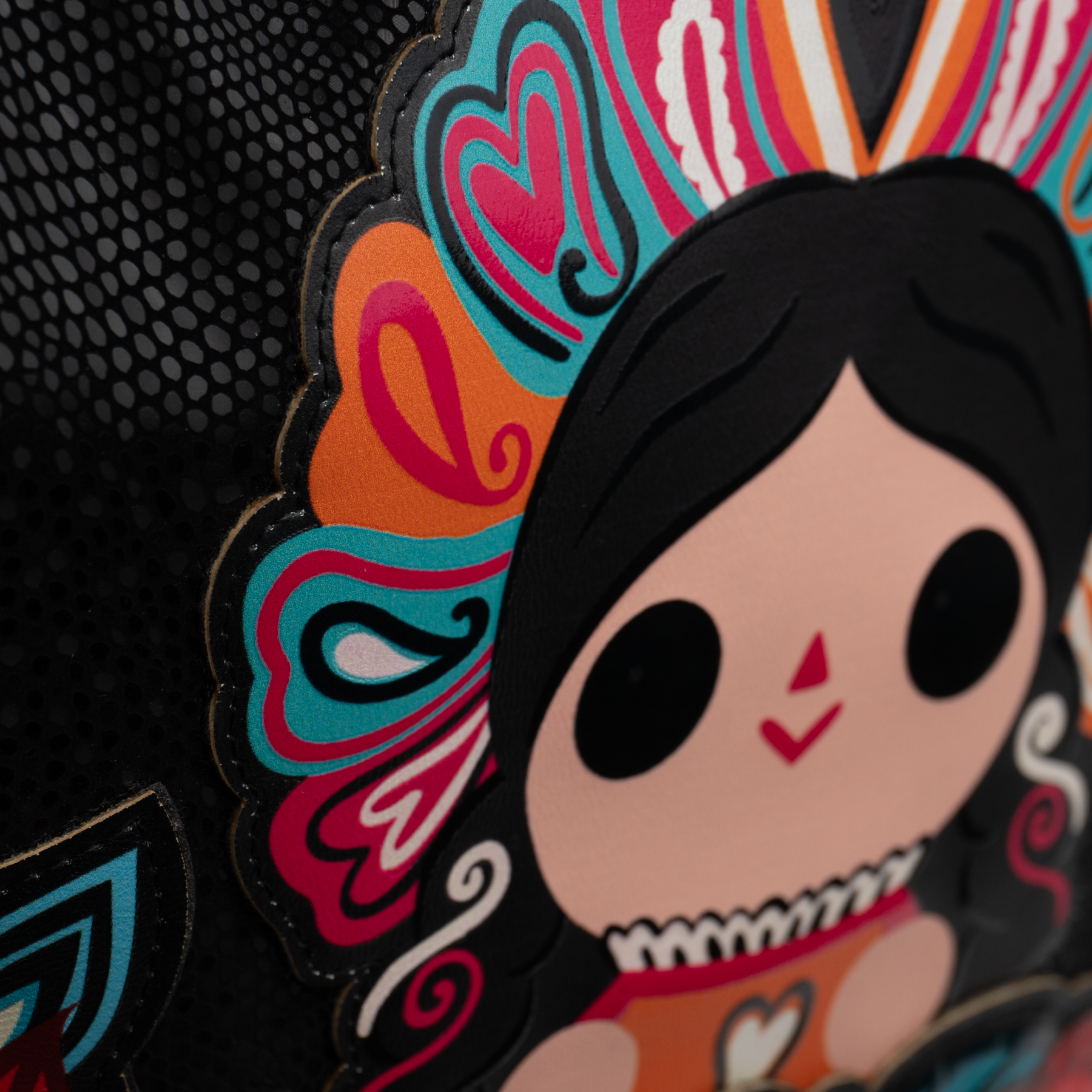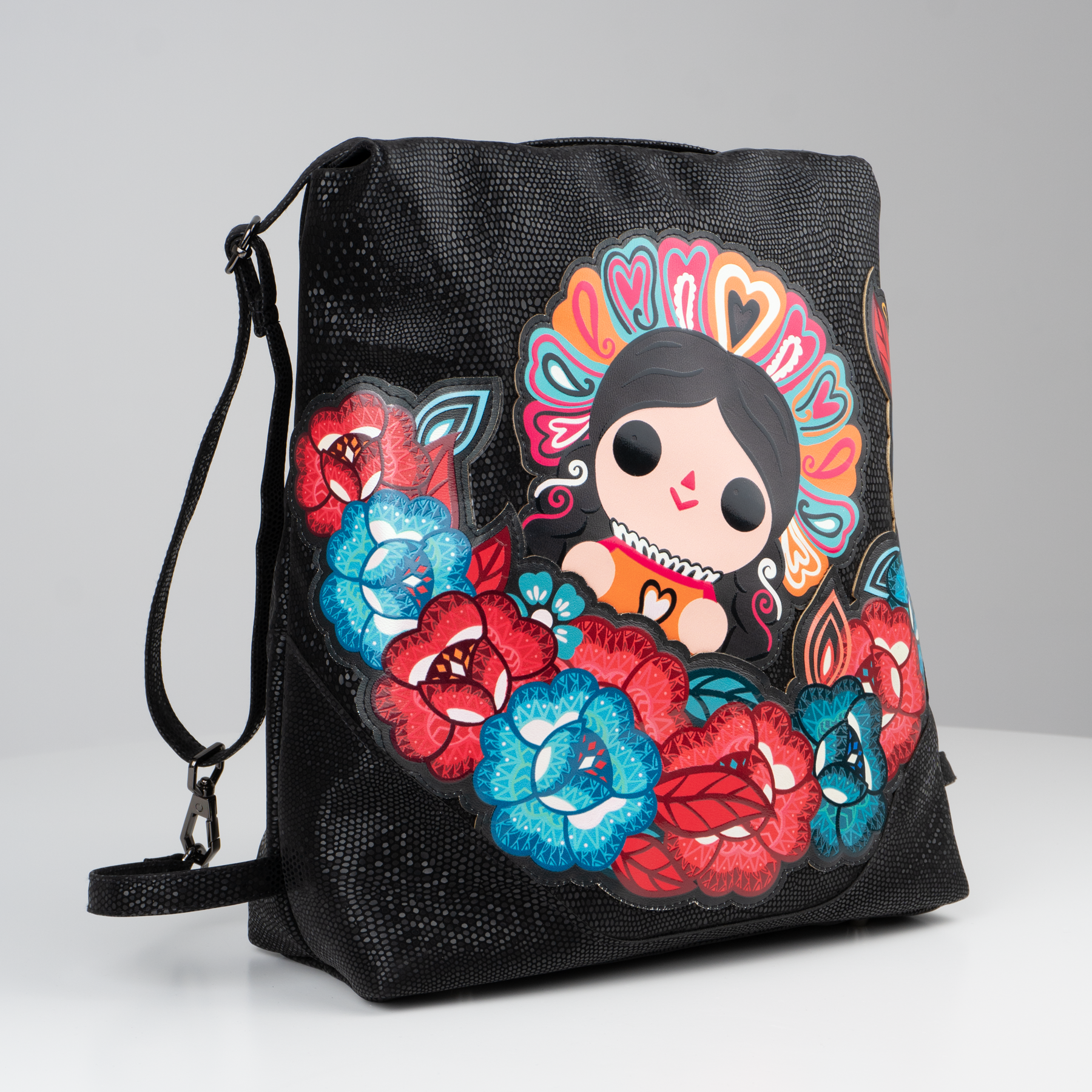 Bolsa con diseño inspirado en los bordados textiles presentes en los trajes típicos que tiene como protagonista a Petrita, nuestra reinterpretación de la muñeca mazahua.