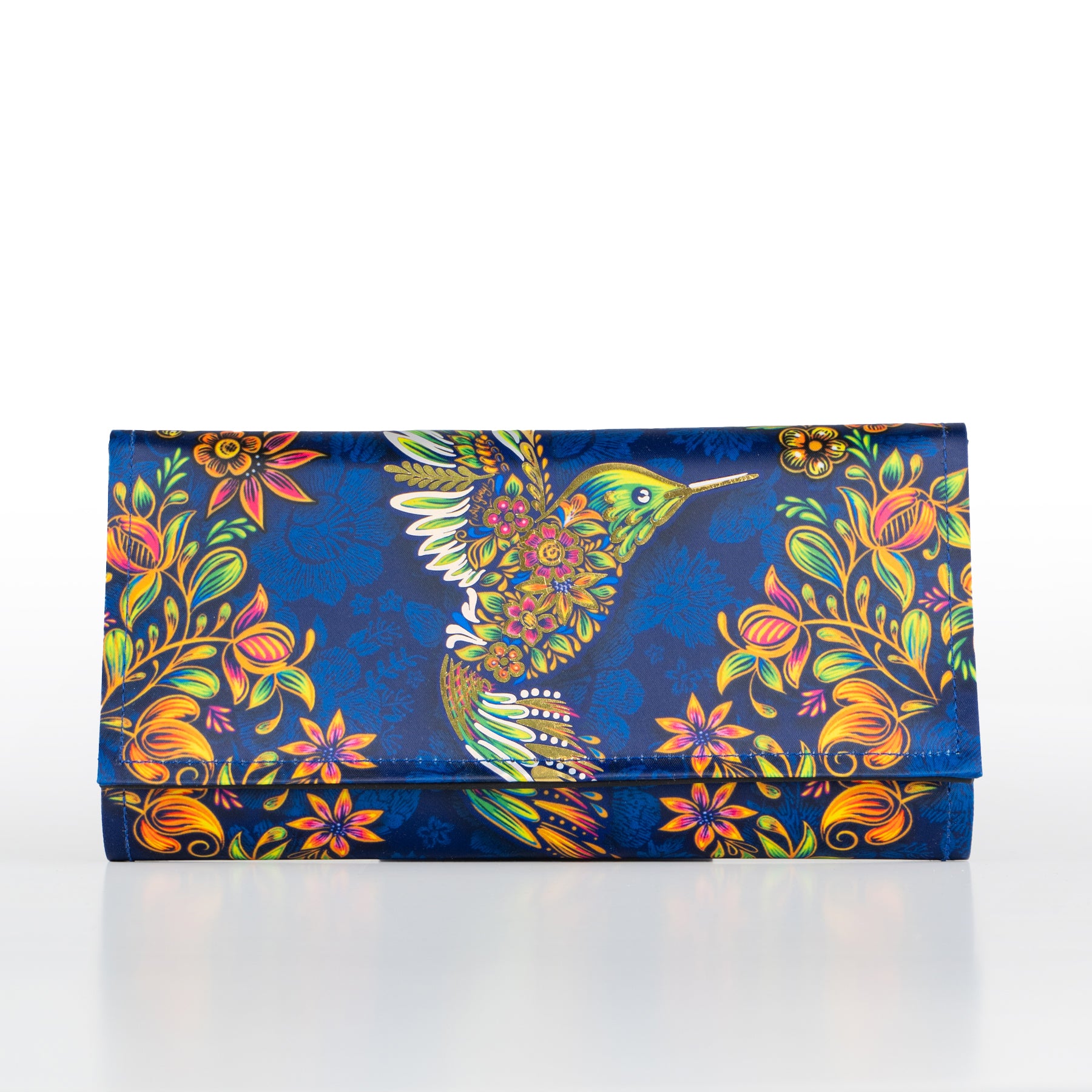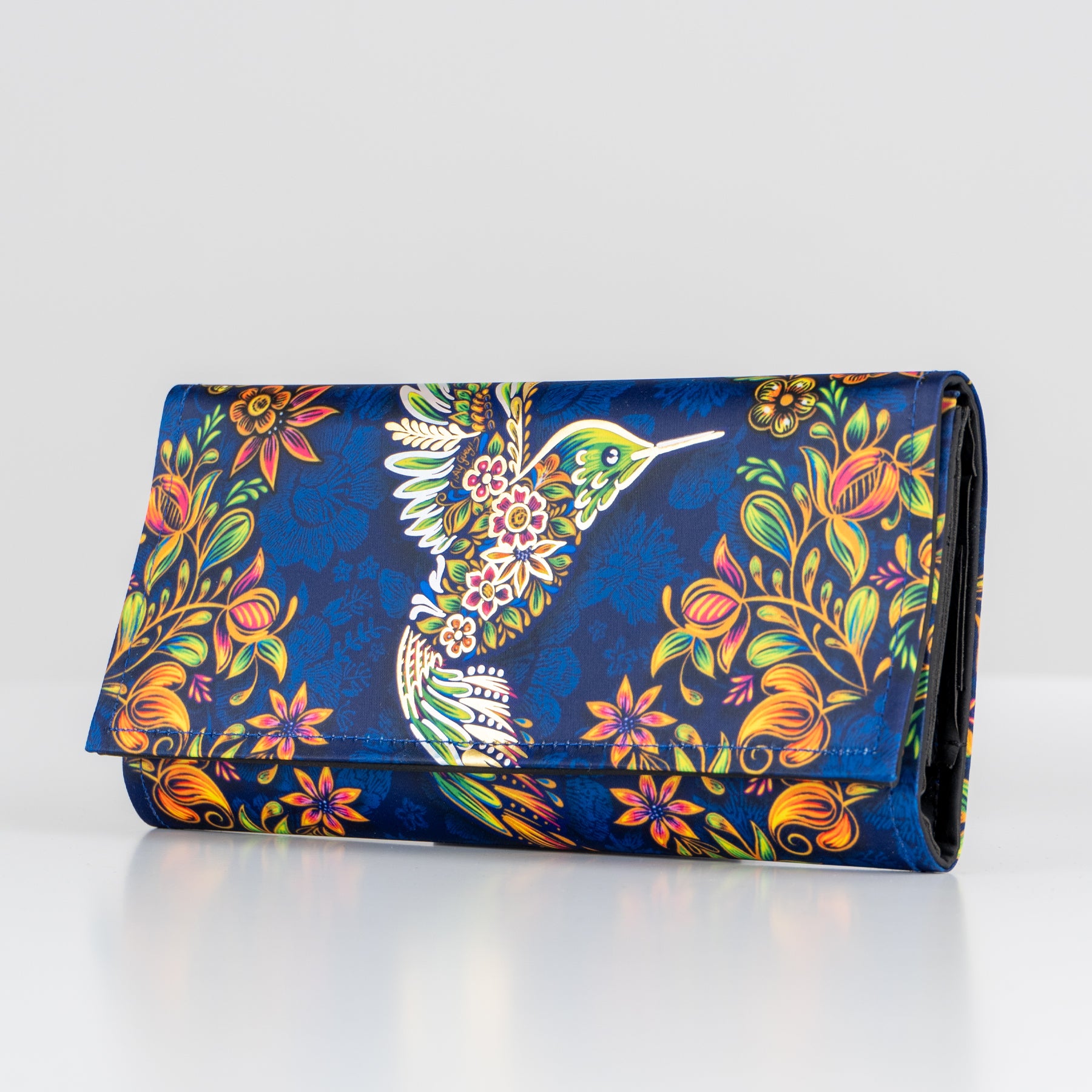 Cartera de dama inspirada en el colibrí y las flores del campo mexicano.