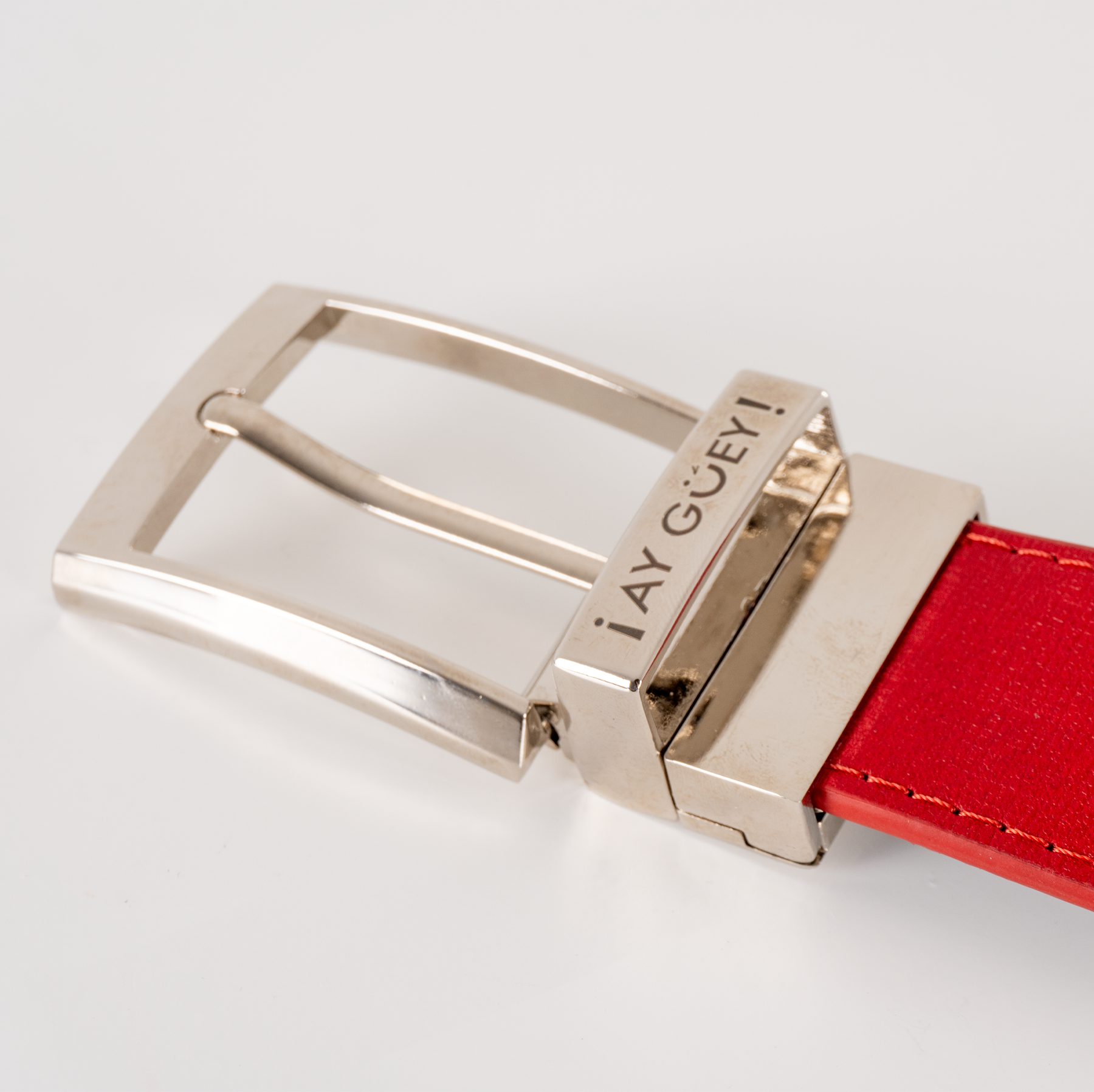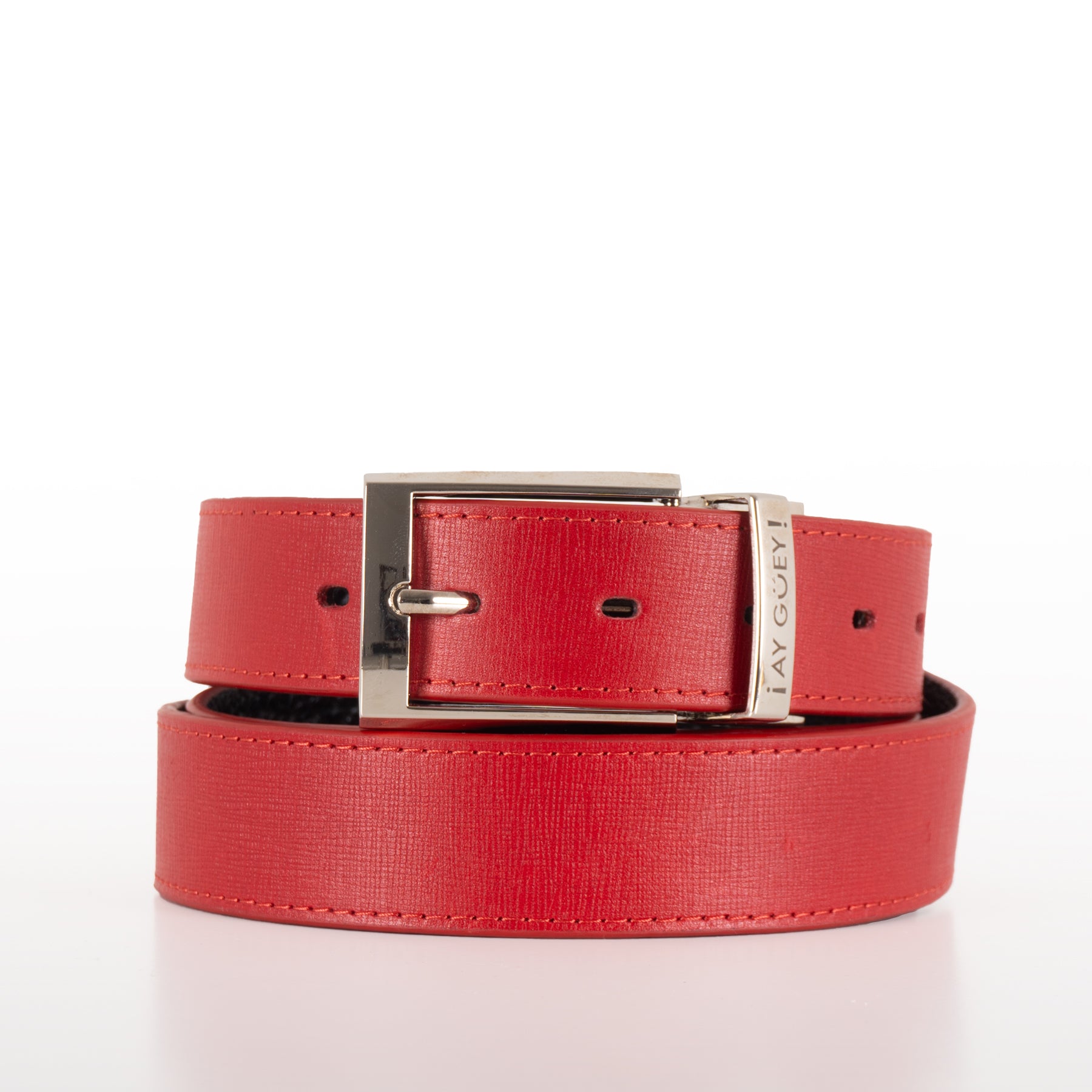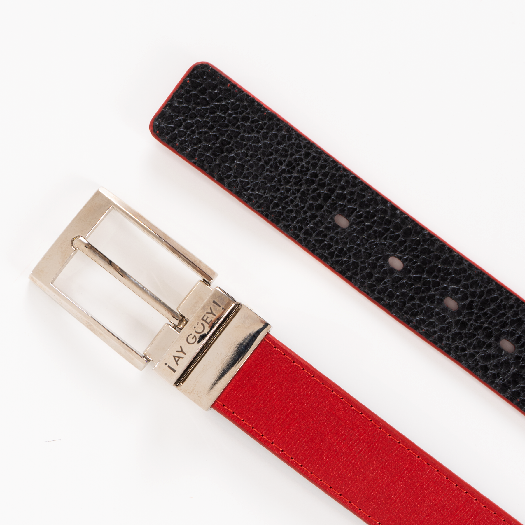Cinturón de Piel Reversible - Modelo KUPURI - Color Rojo/Negro