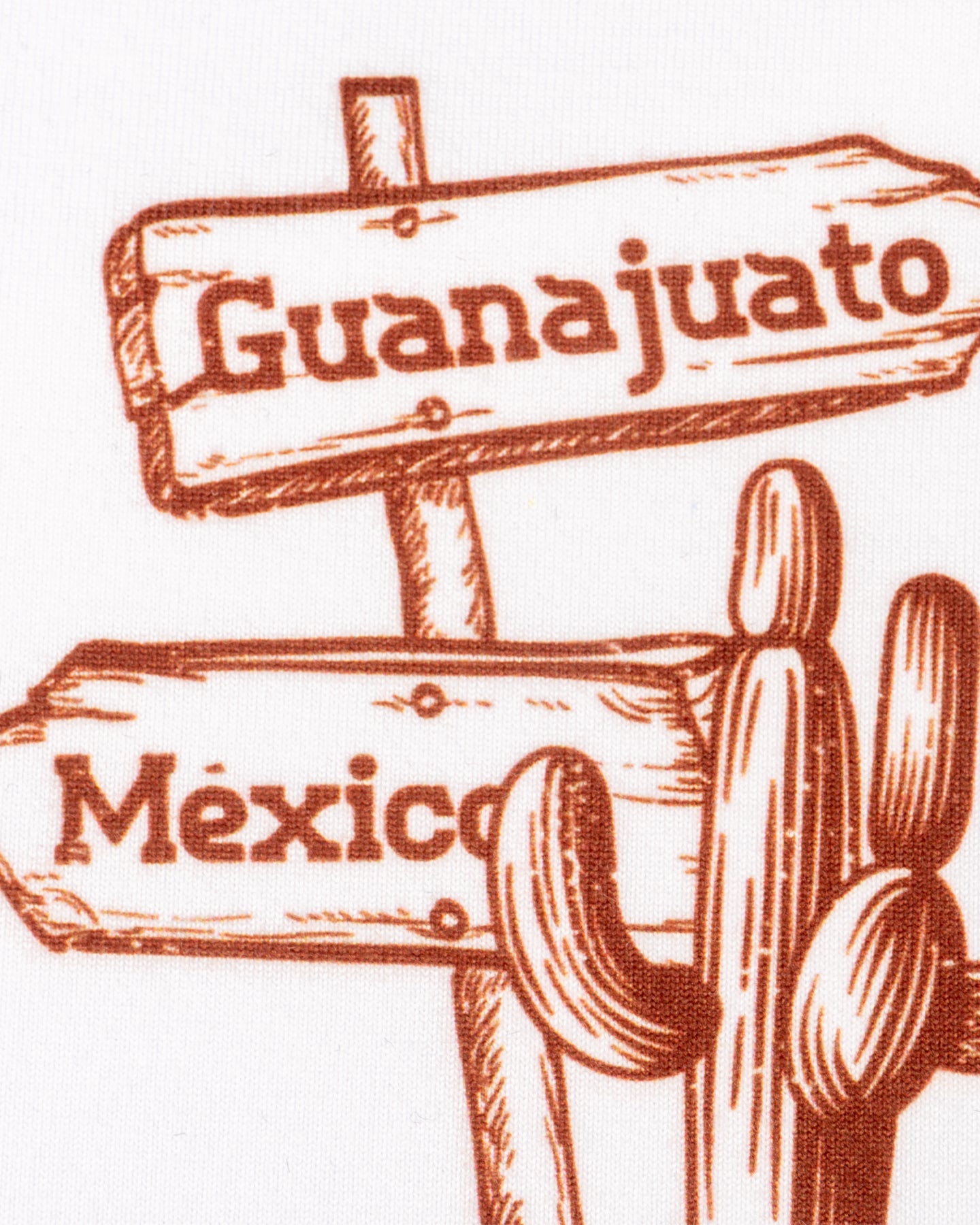 La playera GTO (Guanajuato) es una pieza de estilo que celebra el viaje y la tradición mexicana con un toque de humor sutil. Sobre una camiseta blanca de corte clásico. Con gráfico estampado en tonos sepia (café y naranja), imitando la textura de un boceto dibujado a mano. Una playera que captura la esencia aventurera y el orgullo por el Bajío mexicano.