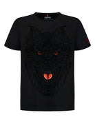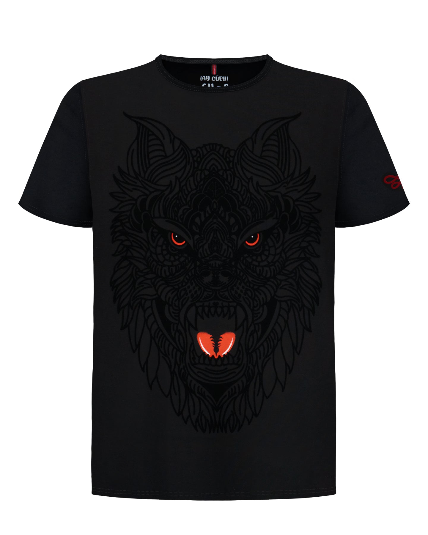 Playera estampada con Flock negro sobre negro para hombre - Modelo LOBO AZTECA