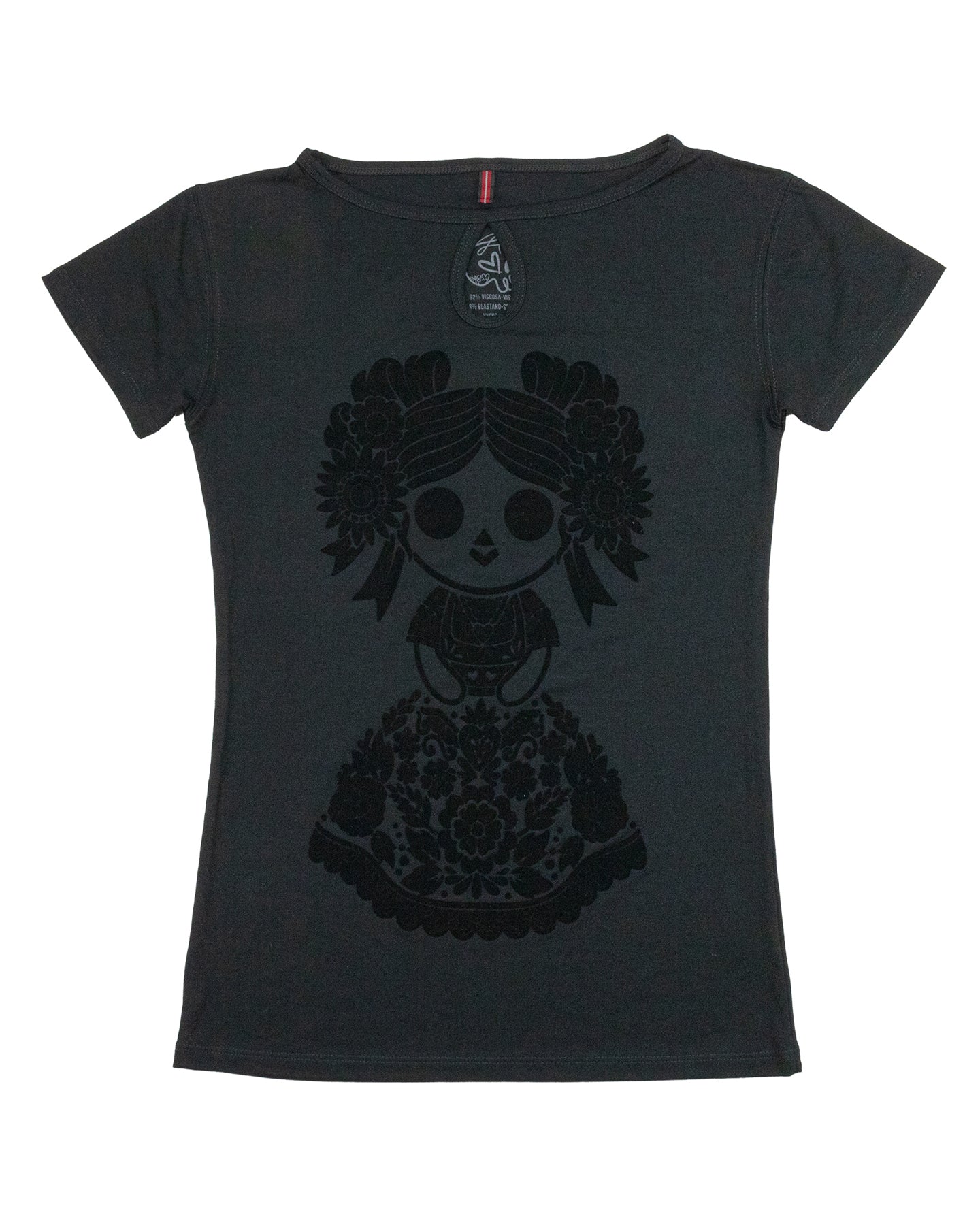 Esta playera esta impresa con la técnica de Flock que otorga una apariencia de terciopelo en el estampado.