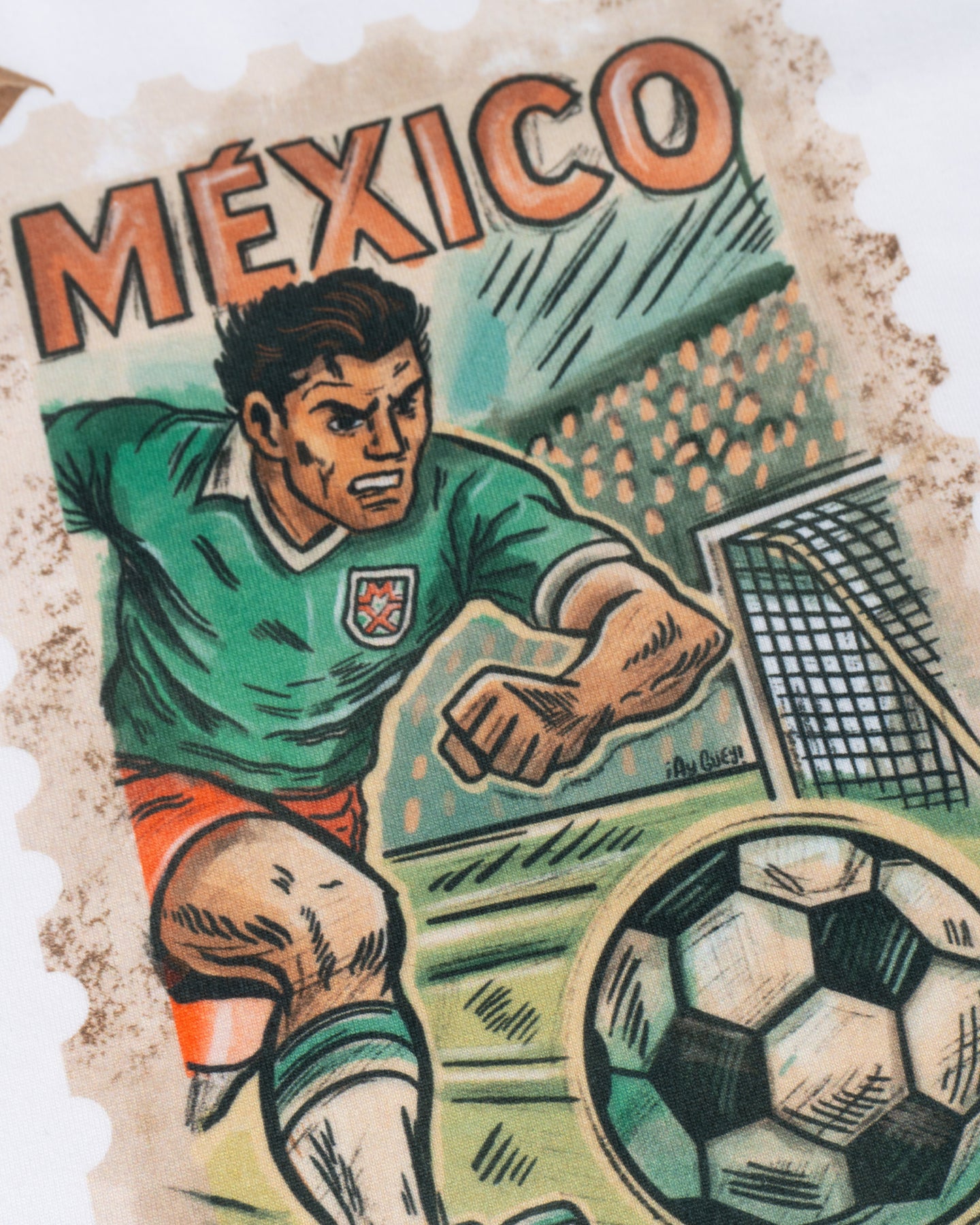 Pieza esencial para los verdaderos apasionados del fútbol. Sobre un diseño clásico en blanco, lleva un vibrante estampado que simula un sello postal retro, con el icónico uniforme y la acción del juego. Lleva el orgullo de la selección a otro nivel. Asegura la tuya y anota un gol de estilo esta temporada.