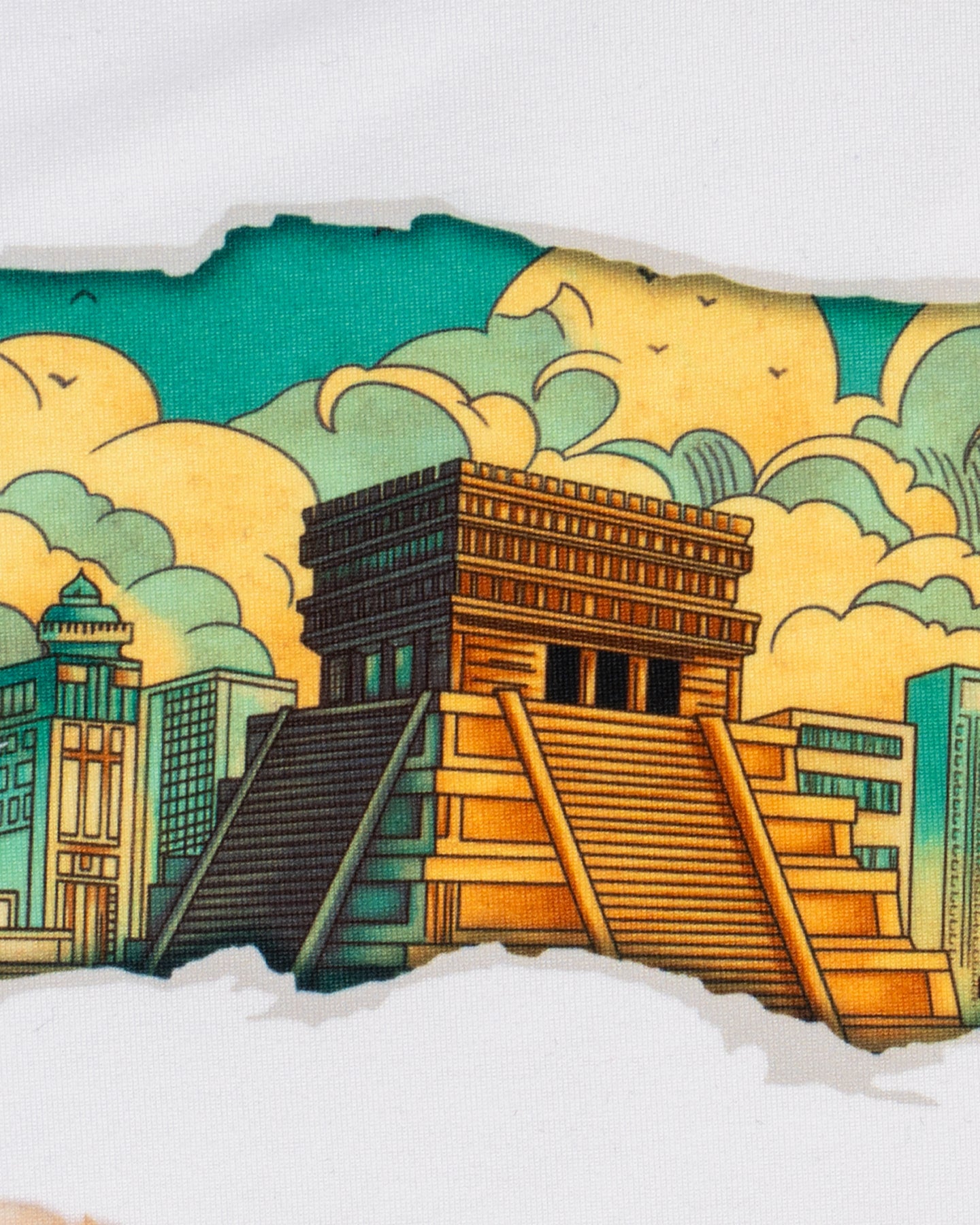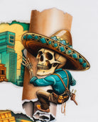 La playera MEZCLADOS es una pieza innovadora que celebra la versatilidad del denim con un diseño tridimensional. Sobre una camiseta blanca de corte clásico, el diseño central forma la palabra "MÉXICO" utilizando un efecto visual de parches y retazos de mezclilla en distintos tonos de azul. Ideal para un look urbano que proyecta orgullo y creatividad en cada costura.