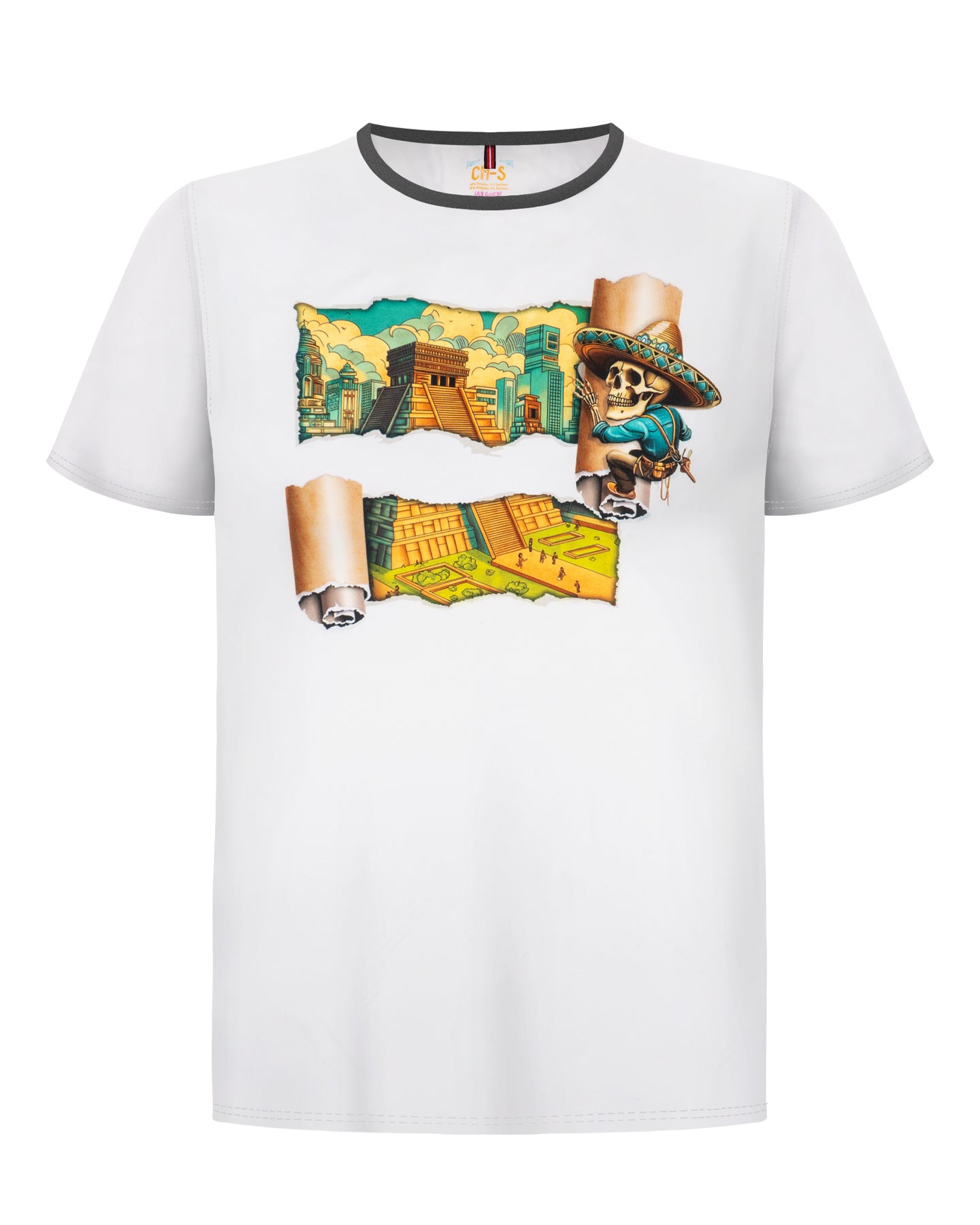 Playera blanca con estampado sublimado para hombre - Modelo PÓSTER