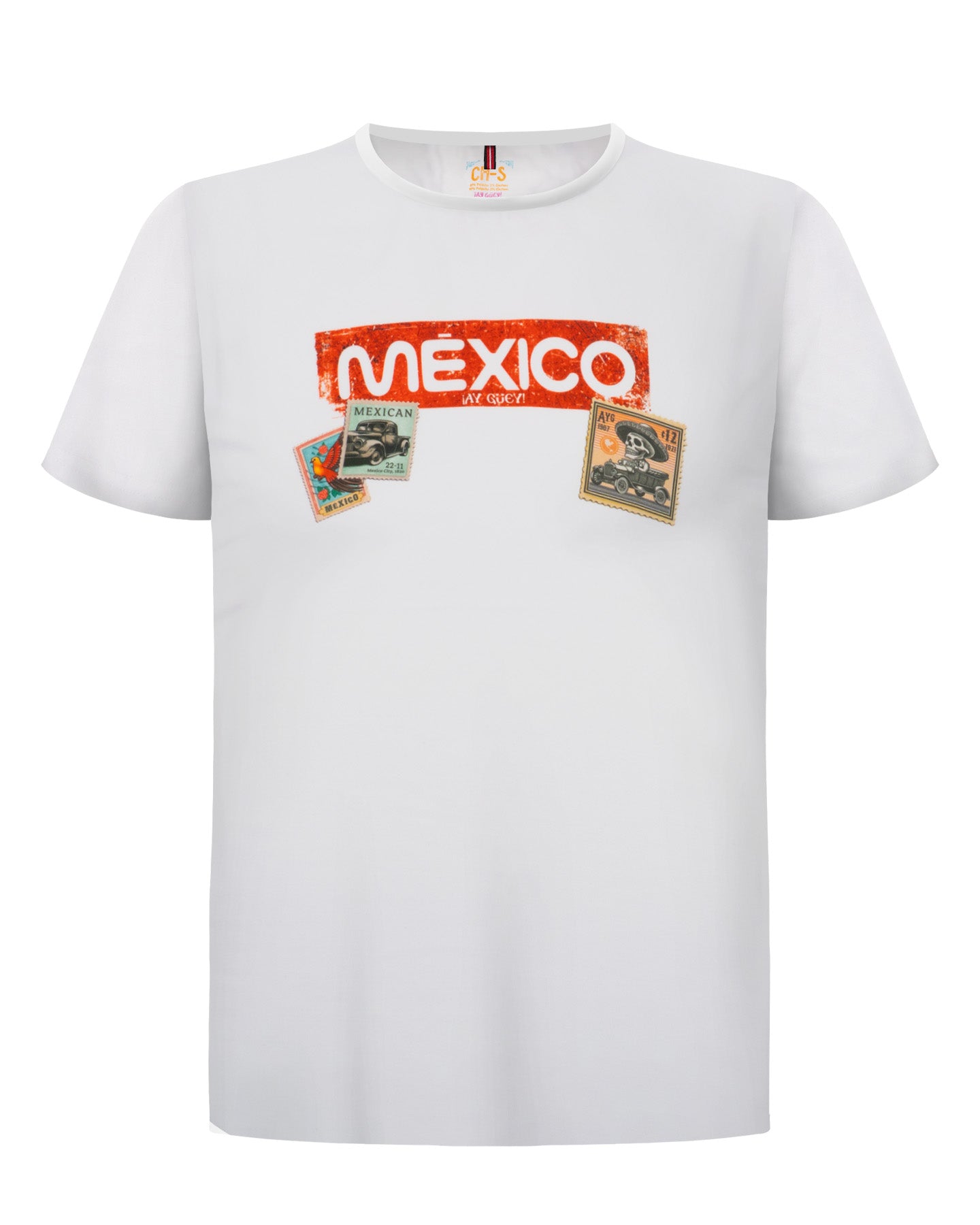Playera blanca con estampado sublimado para hombre - Modelo TURISTEANDO