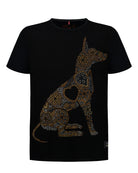 Esta playera plasma la silueta elegante de un Xoloitzcuintle, el guardián ancestral. Su diseño está completamente cubierto de piedra brillante, creando un mosaico deslumbrante que capta todas las miradas.