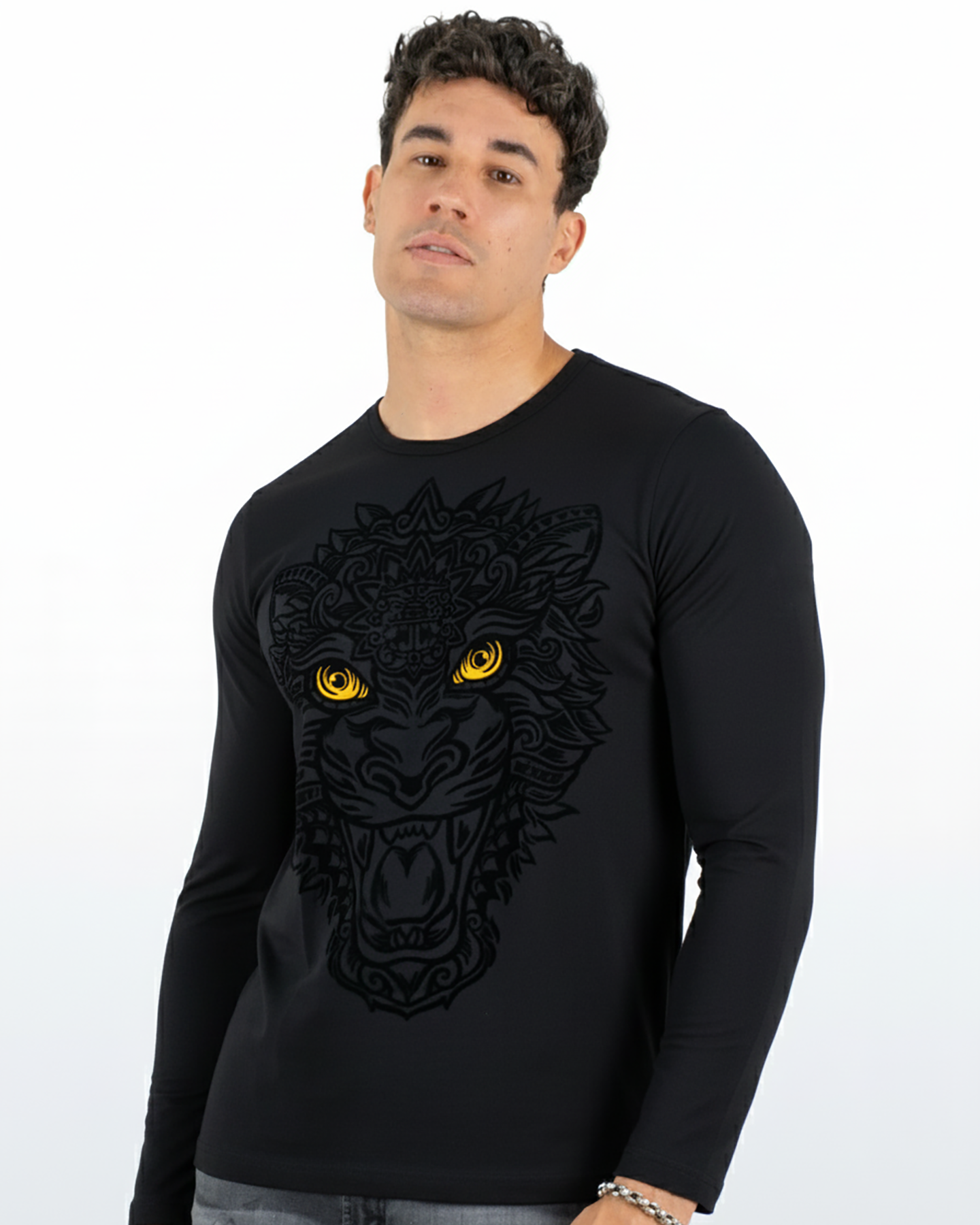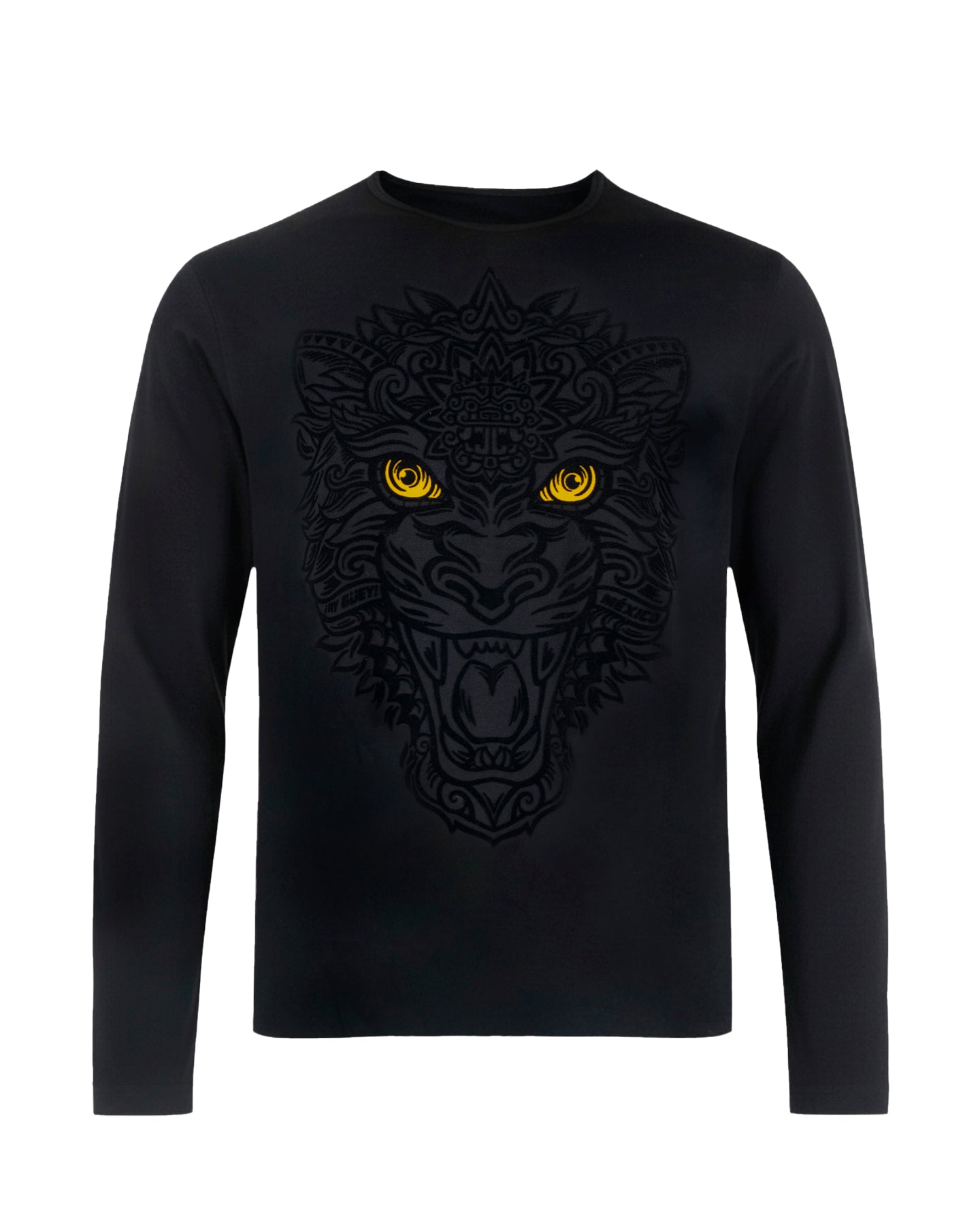 Playera estampada manga larga con aplicación de Flock - Modelo BALAMCOATL