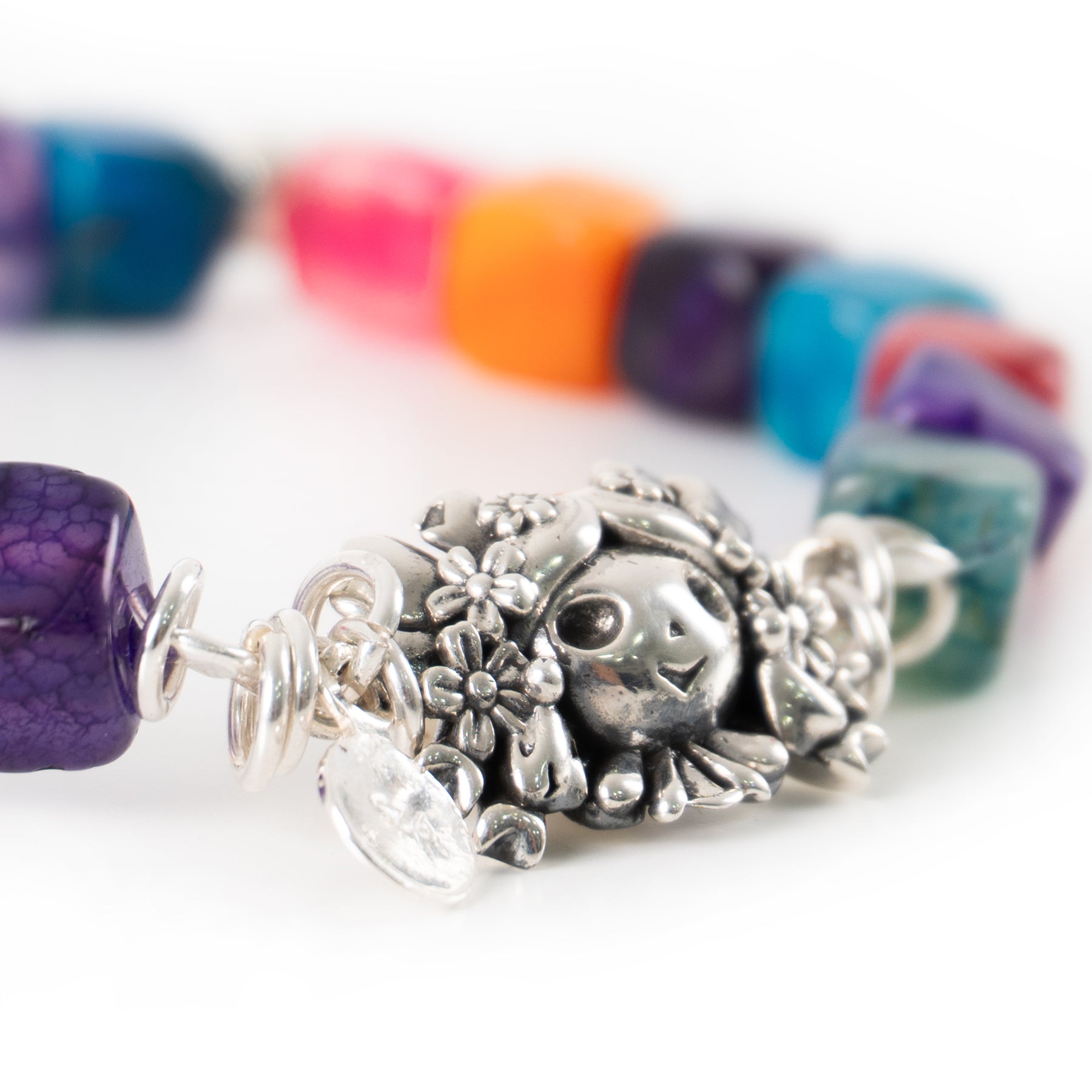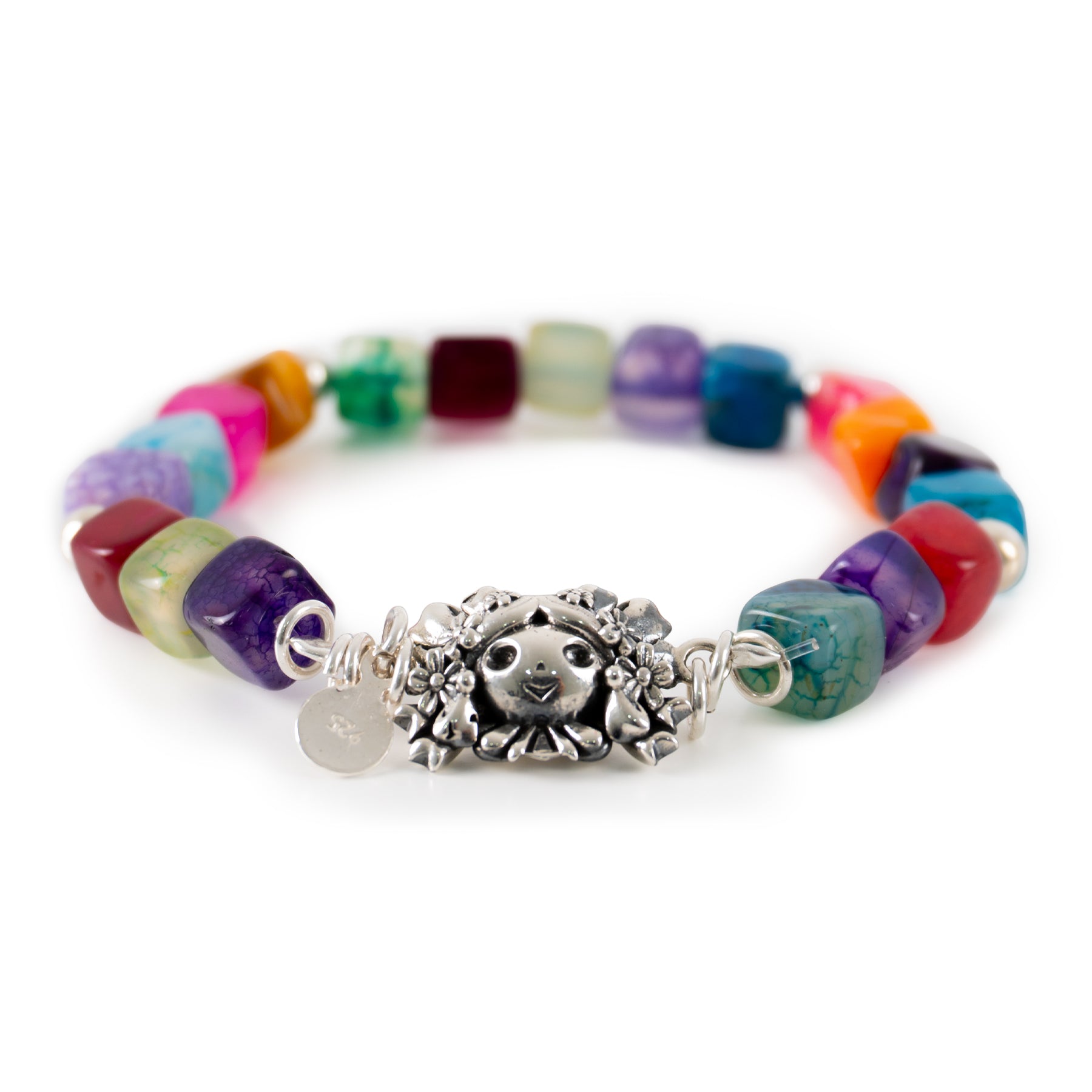 Con un diseño que evoca la riqueza de la tierra, la pulsera "Petra Caramelo" es una pieza única elaborada artesanalmente en México. Su composición de cuarzos de colores, cuidadosamente seleccionados para imitar la calidez y dulzura del caramelo, se entrelaza con la pureza y el brillo atemporal de la plata mexicana de ley .925.