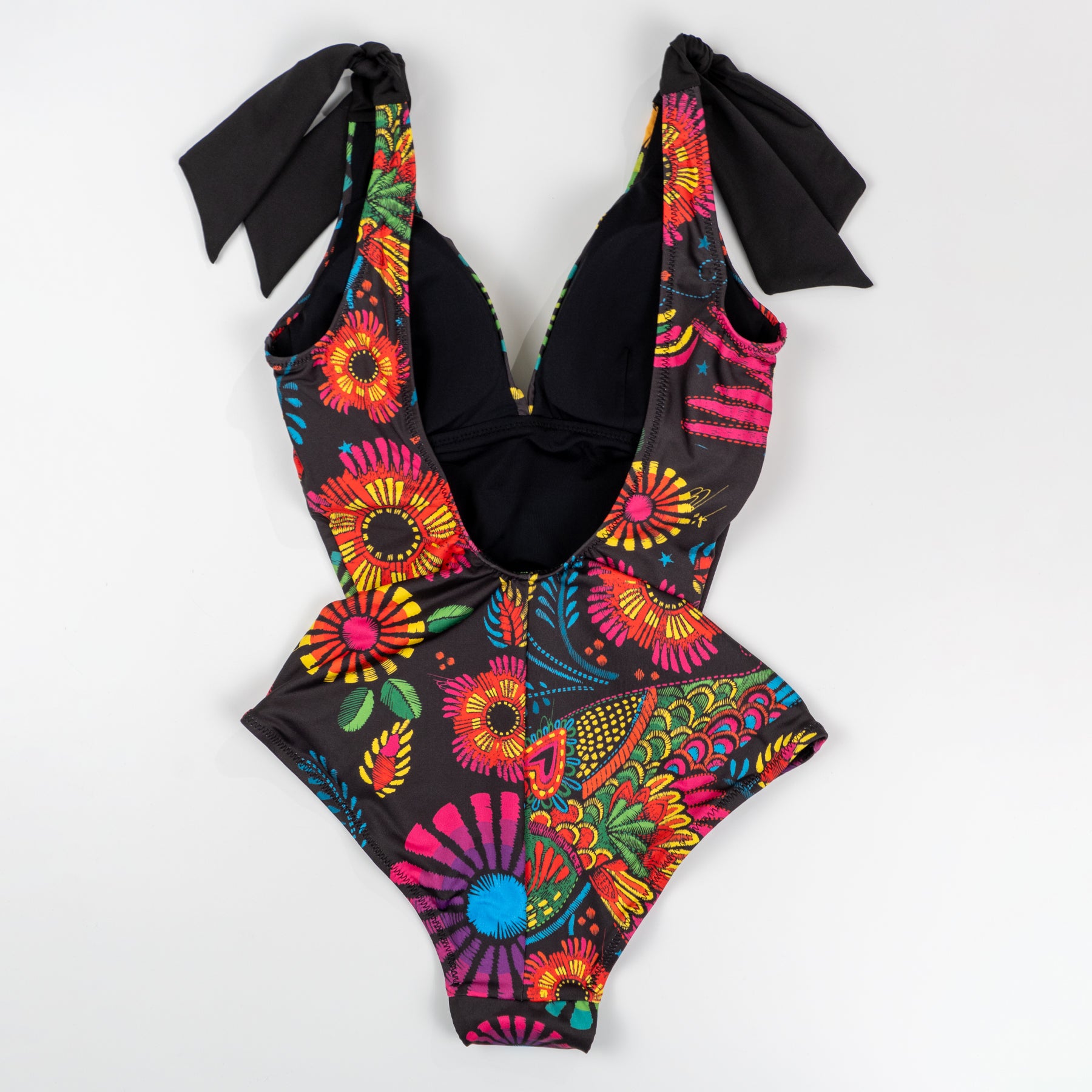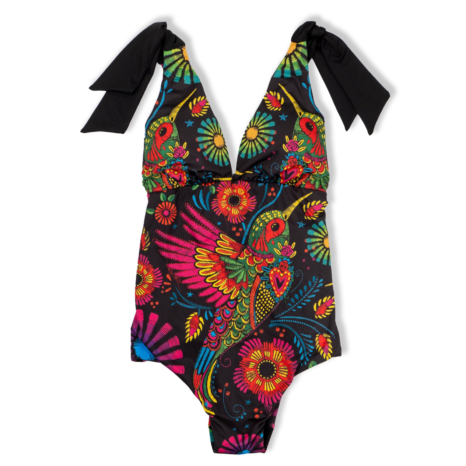 Sumérgete en la belleza de la naturaleza mexicana con este vibrante traje de baño de una pieza. Inspirado en el aleteo mágico del colibrí y la explosión de color de las flores bordadas, "Vallarta" captura la alegría y vitalidad de Puerto Vallarta en cada detalle. Sus tonos vivos y el diseño artístico te harán sentir única y radiante en cada aventura acuática.