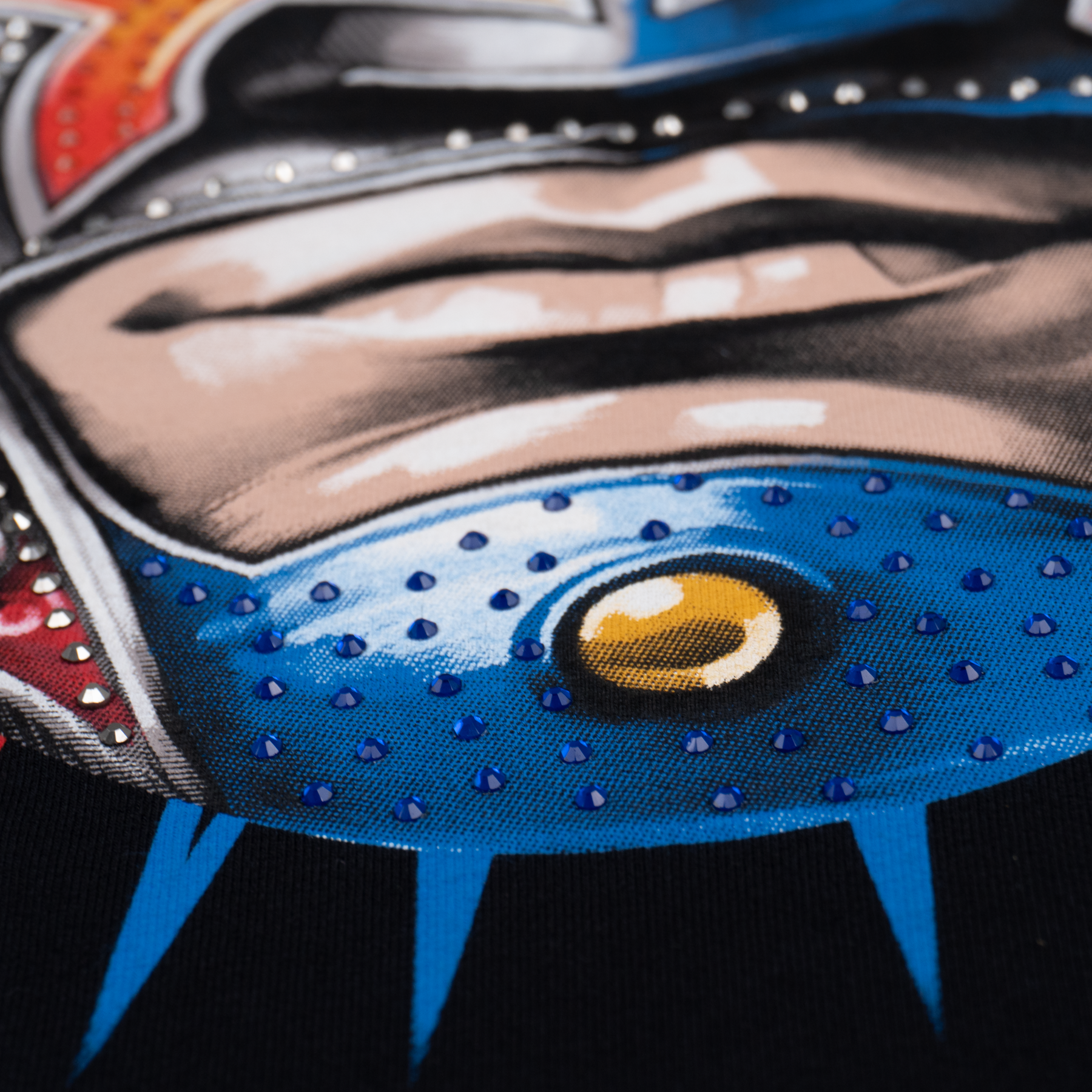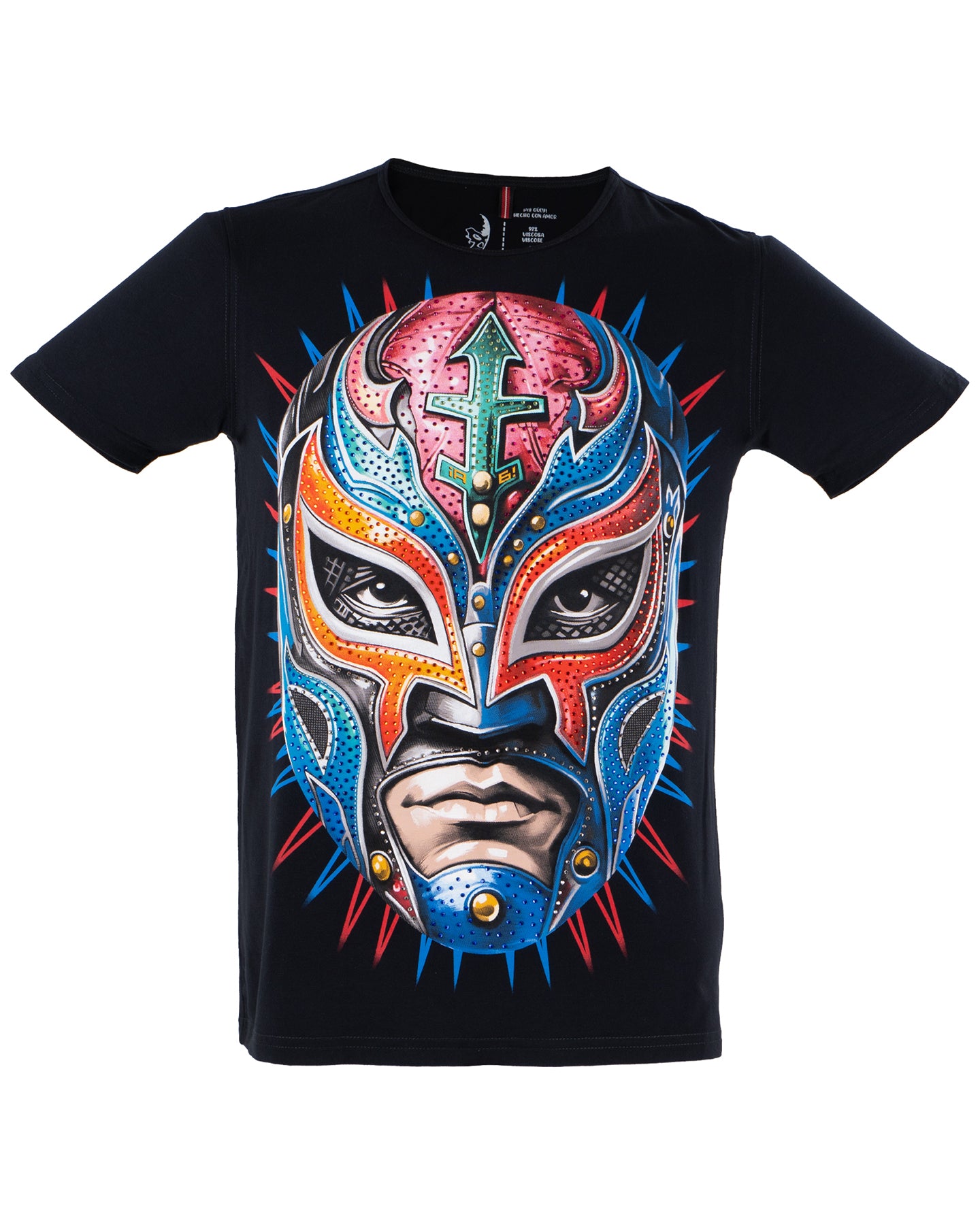 Ultra Wey es una playera de hombre inspirada en la lucha libre, con diseño de una icónica máscara, cuenta con aplicaciones de pedrería para un estilo valiente y original. Con la Ultra Wey, demuestra tu pasión por la lucha y tu orgullo por la cultura mexicana.